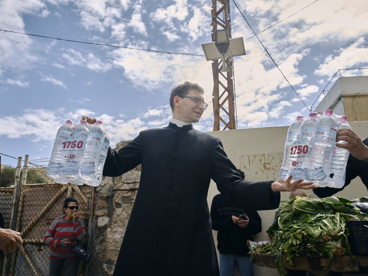 A humanitarian convoy led by Apostolic Nuncio Monsignor Paolo Borgia, an archbishop and Vatican diplomat, in southern Lebanon.