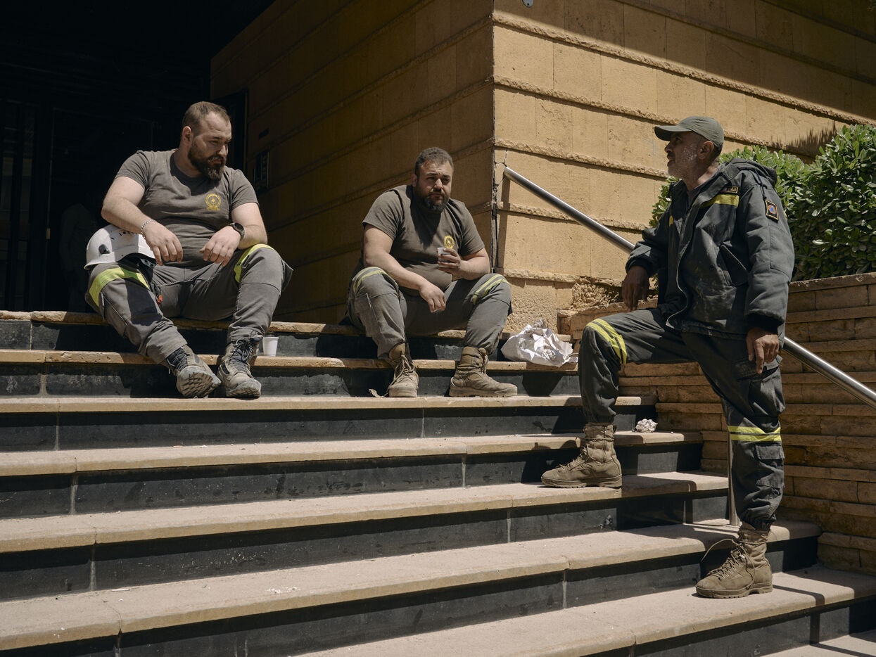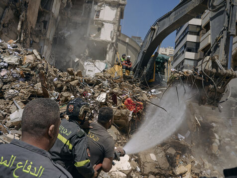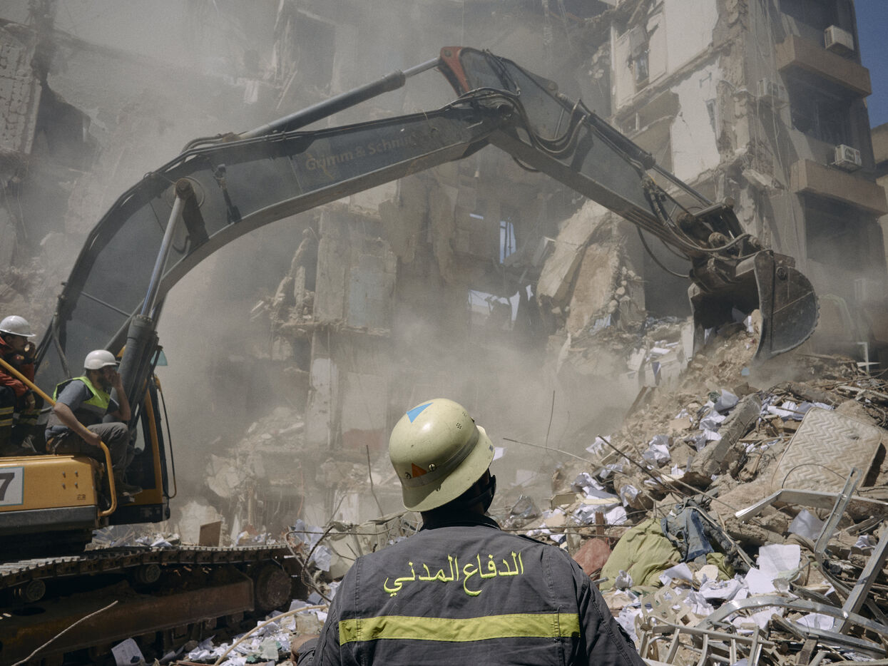In the aftermath of an Israeli strike on a residential building in Tallet al-Khayat, rescue workers continue to search through the rubble for bodies in Beirut.