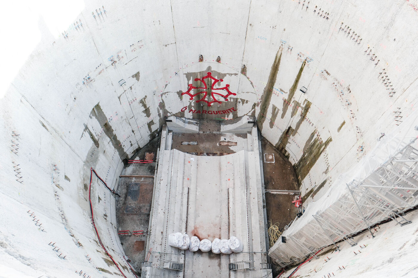 Arrival of the Marguerite tunnel boring machine at the Saint-Sauveur shaft – Metro Line C Toulouse