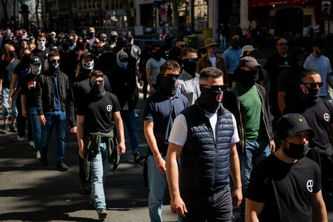 A few hundred ultra-right-wing activists march in masks under police protection.