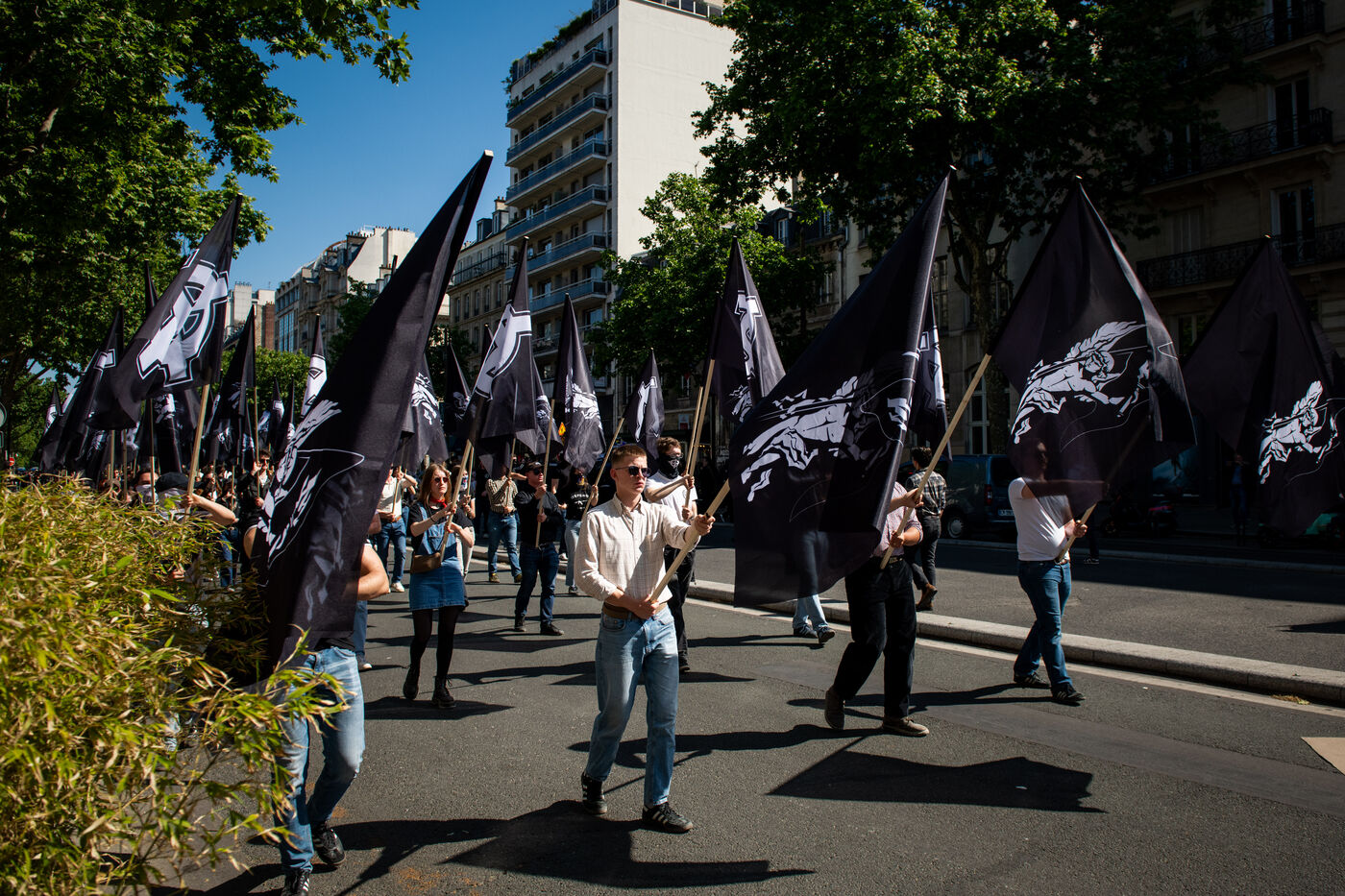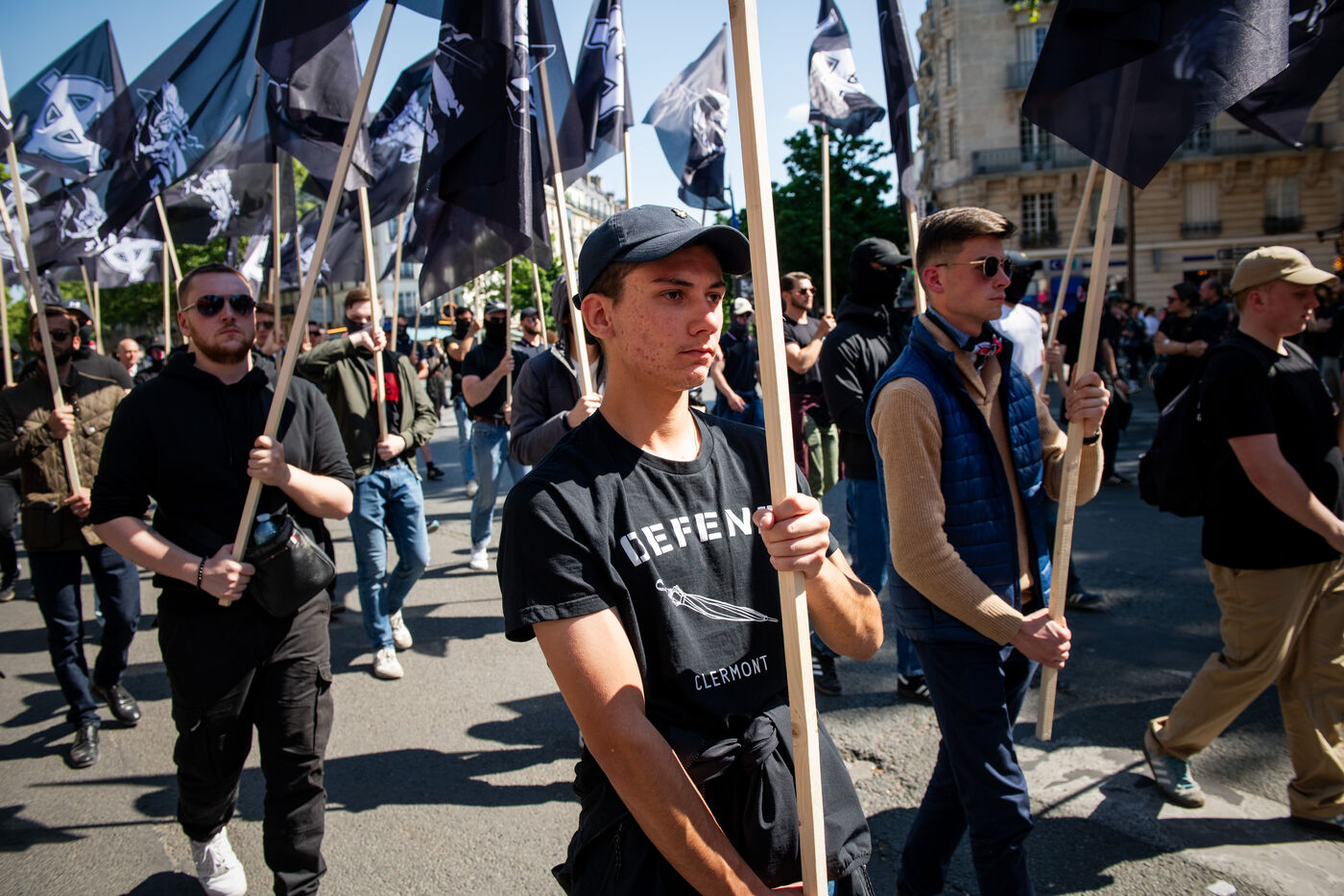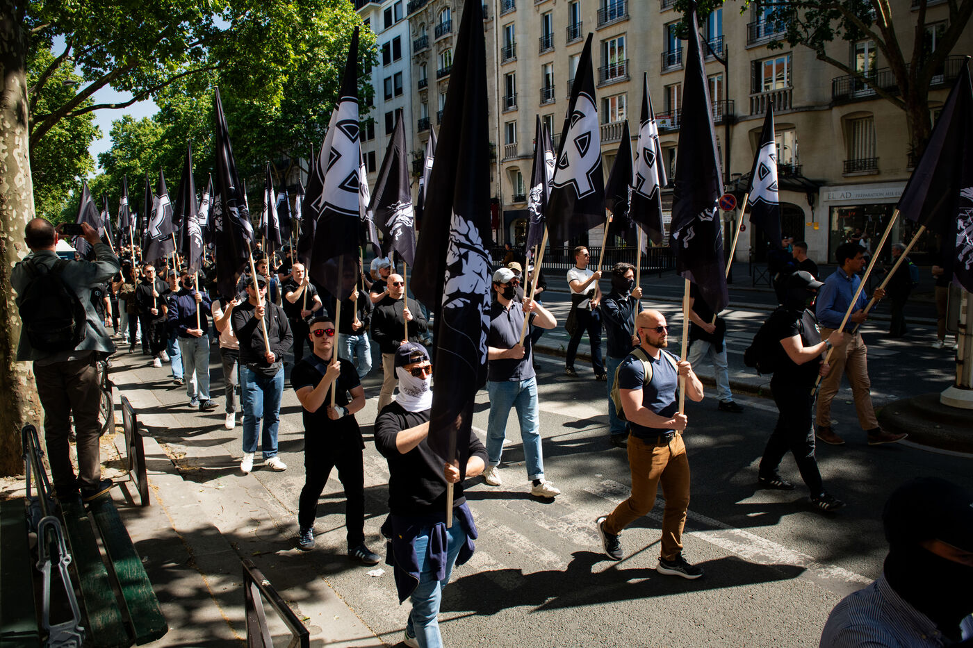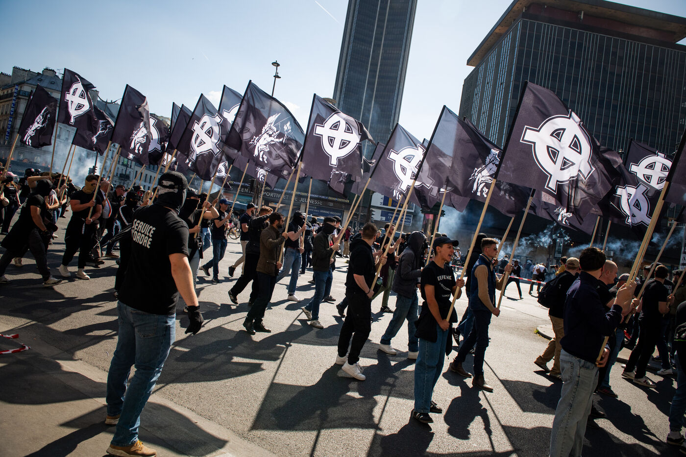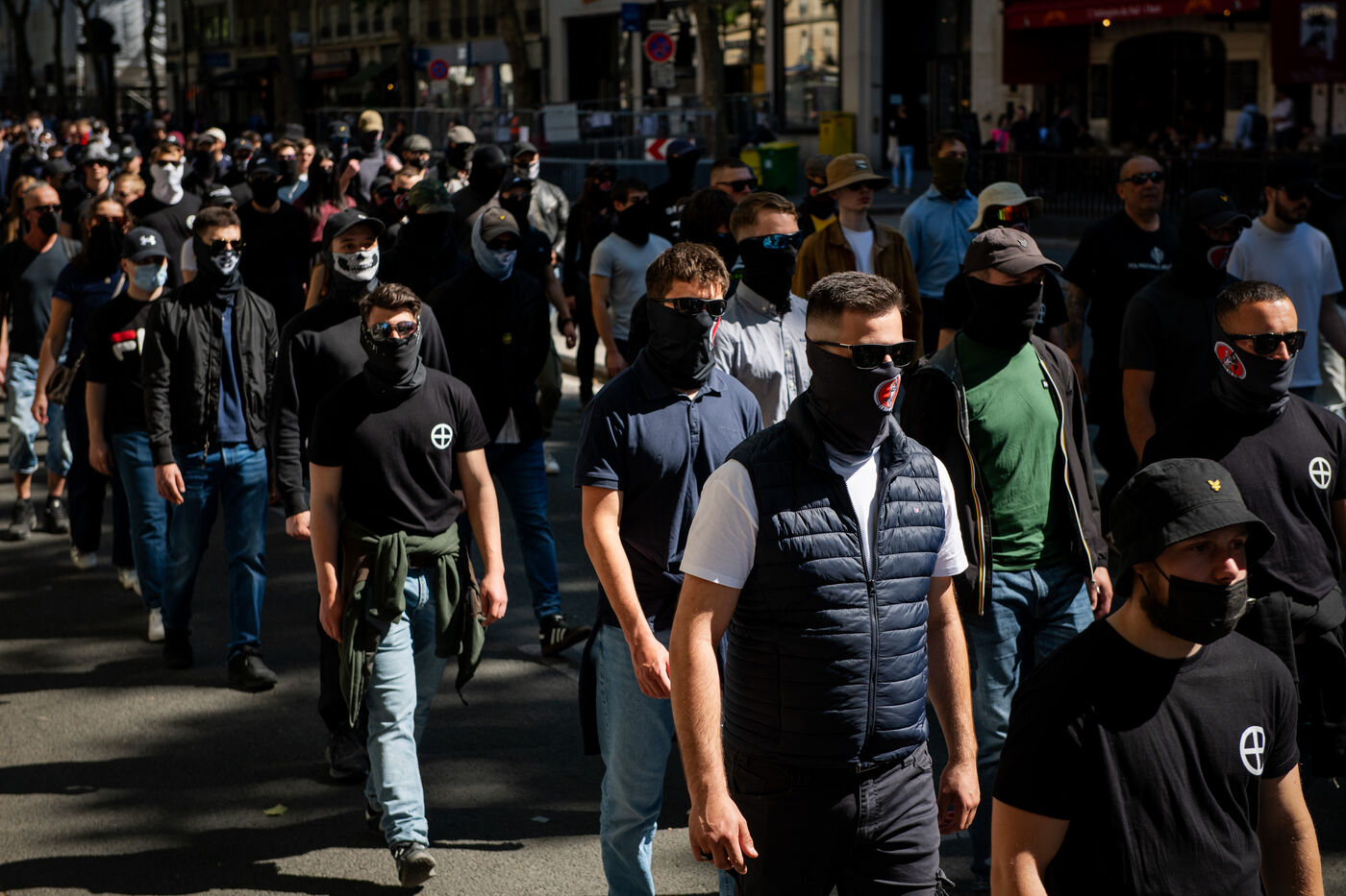 Quelques centaines de militants d'ultradroite defilent masques sous protection des forces de l ordre.
