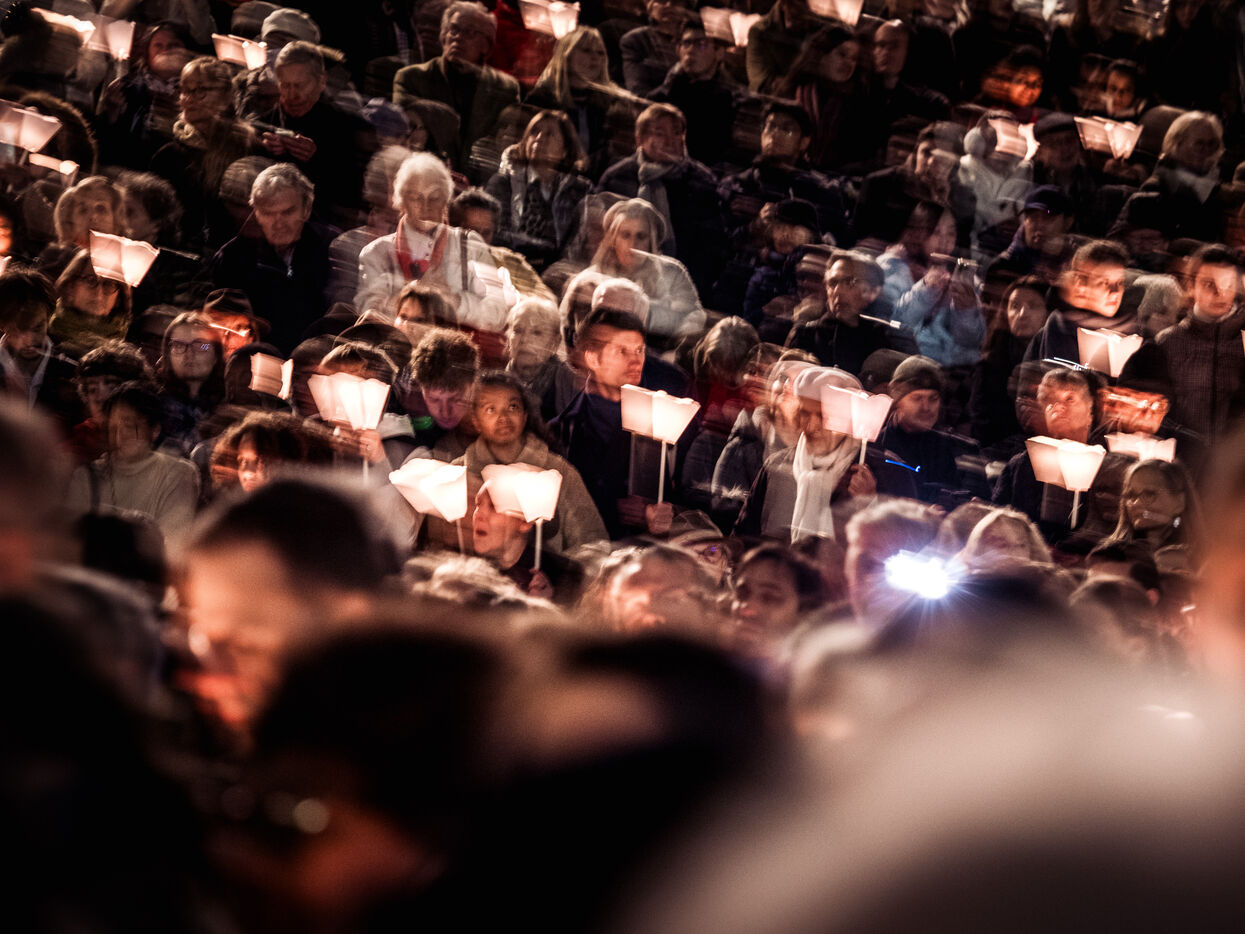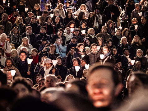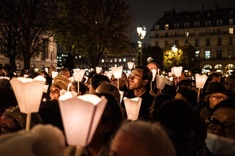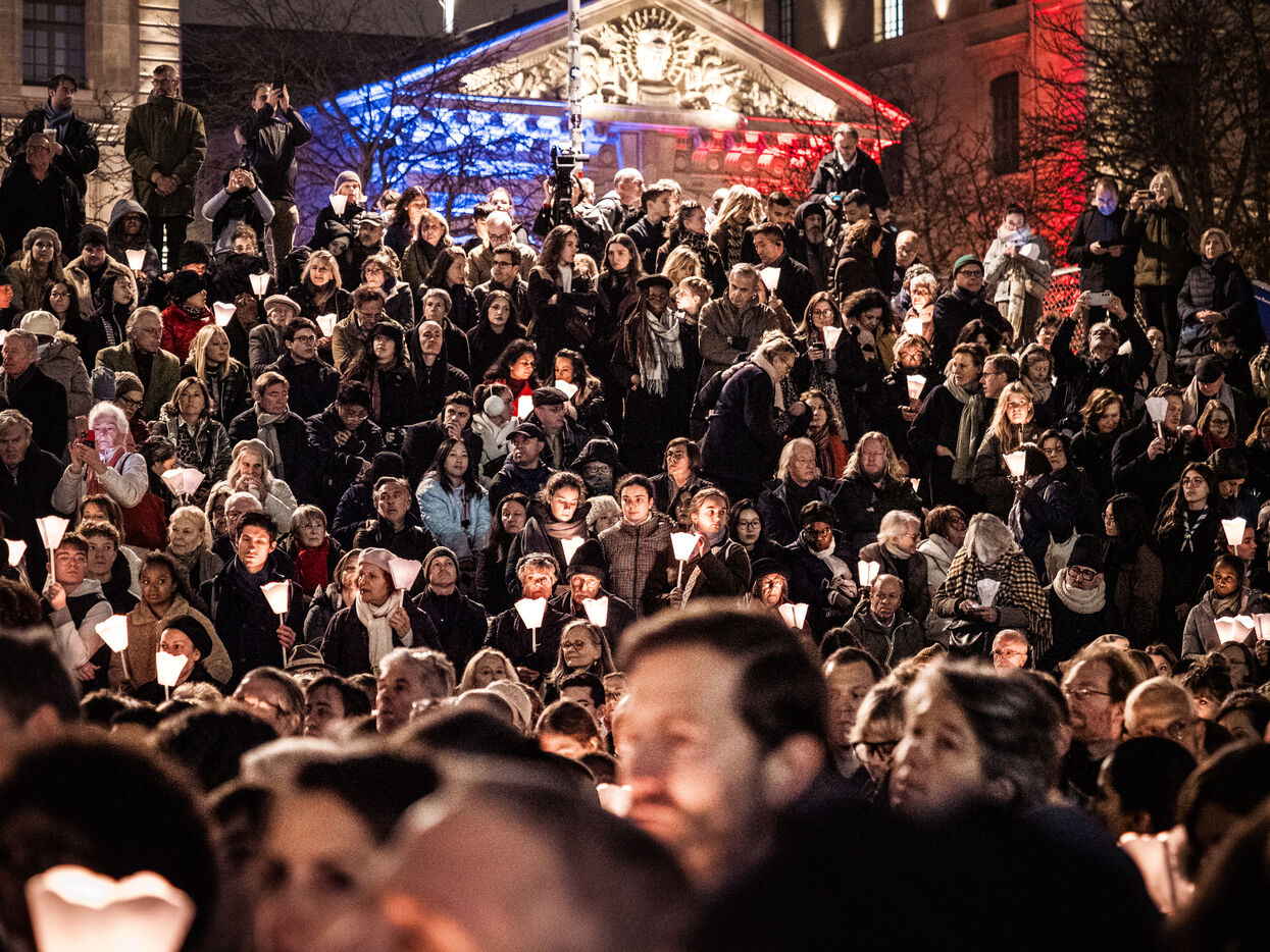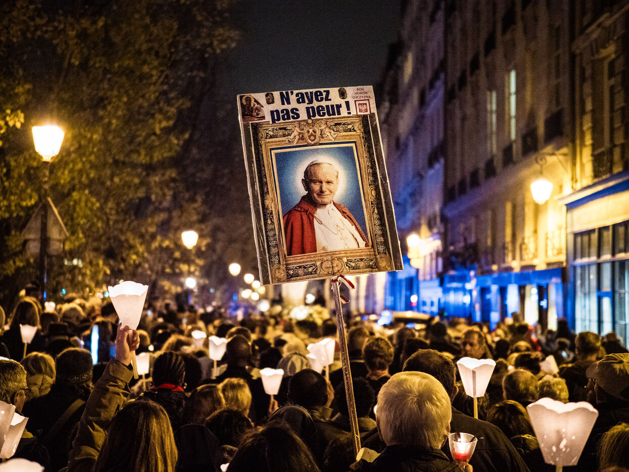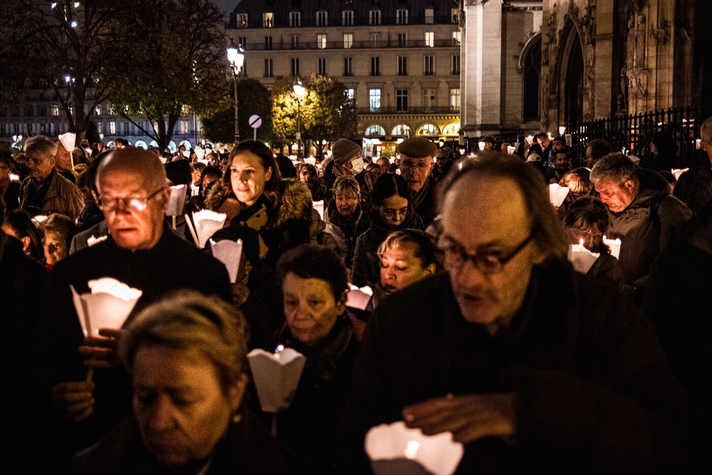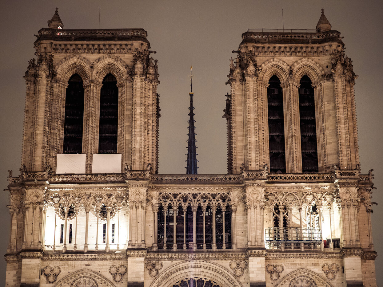 Retour de la Statue de La Vierge à l'Enfant à Notre-Dame de Paris avec une procession aux flambeaux.
