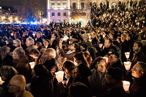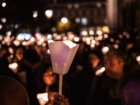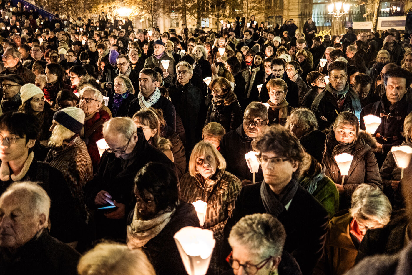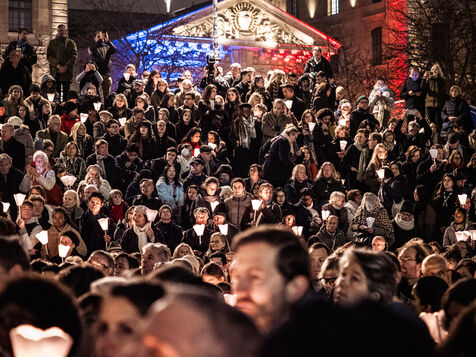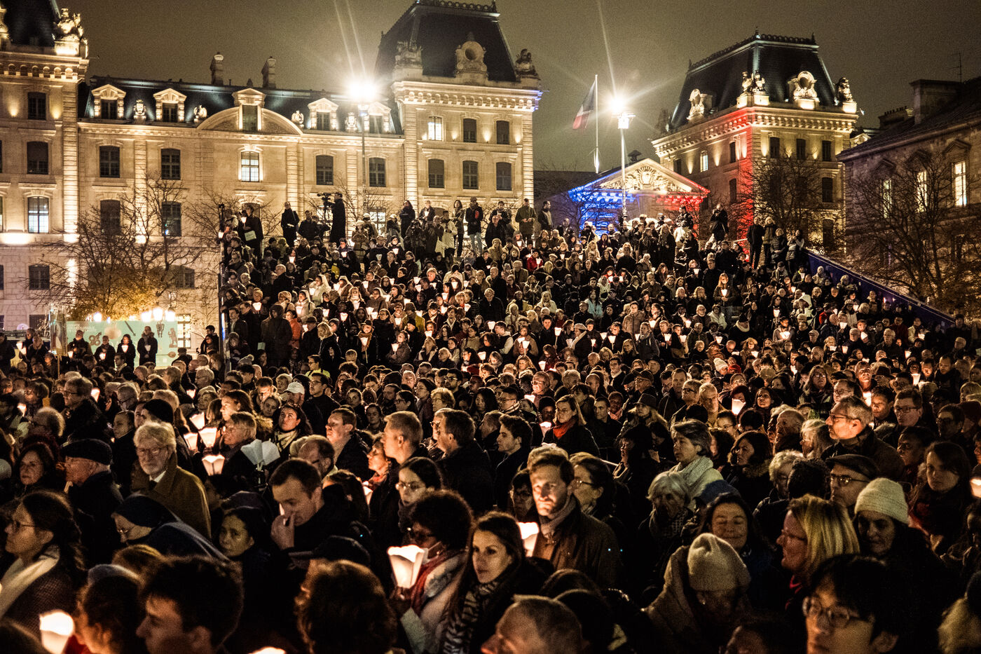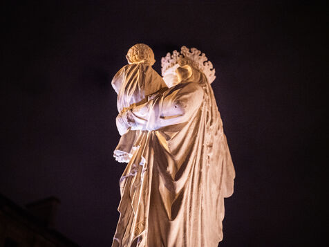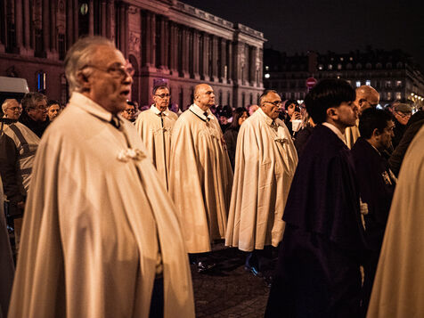 Return of the Statue of the Virgin and Child to Notre-Dame de Paris with a torchlight procession.
