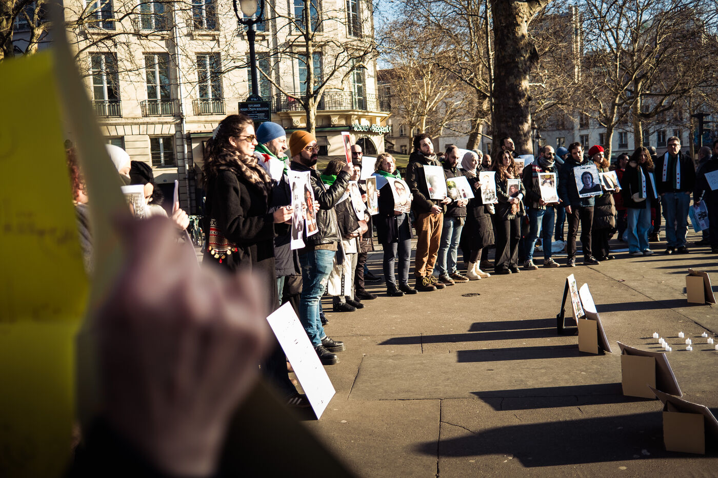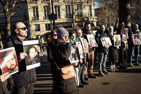 Rassemblement en hommage aux personnes disparus sous le régime de Bachar al-Assad. Place de la Bastille, Paris, 27 décembre 2024.
