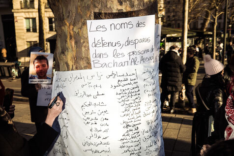 Gathering in tribute to those who died under the regime of Bashar al-Assad. Place de la Bastille, Paris, December 27, 2024.