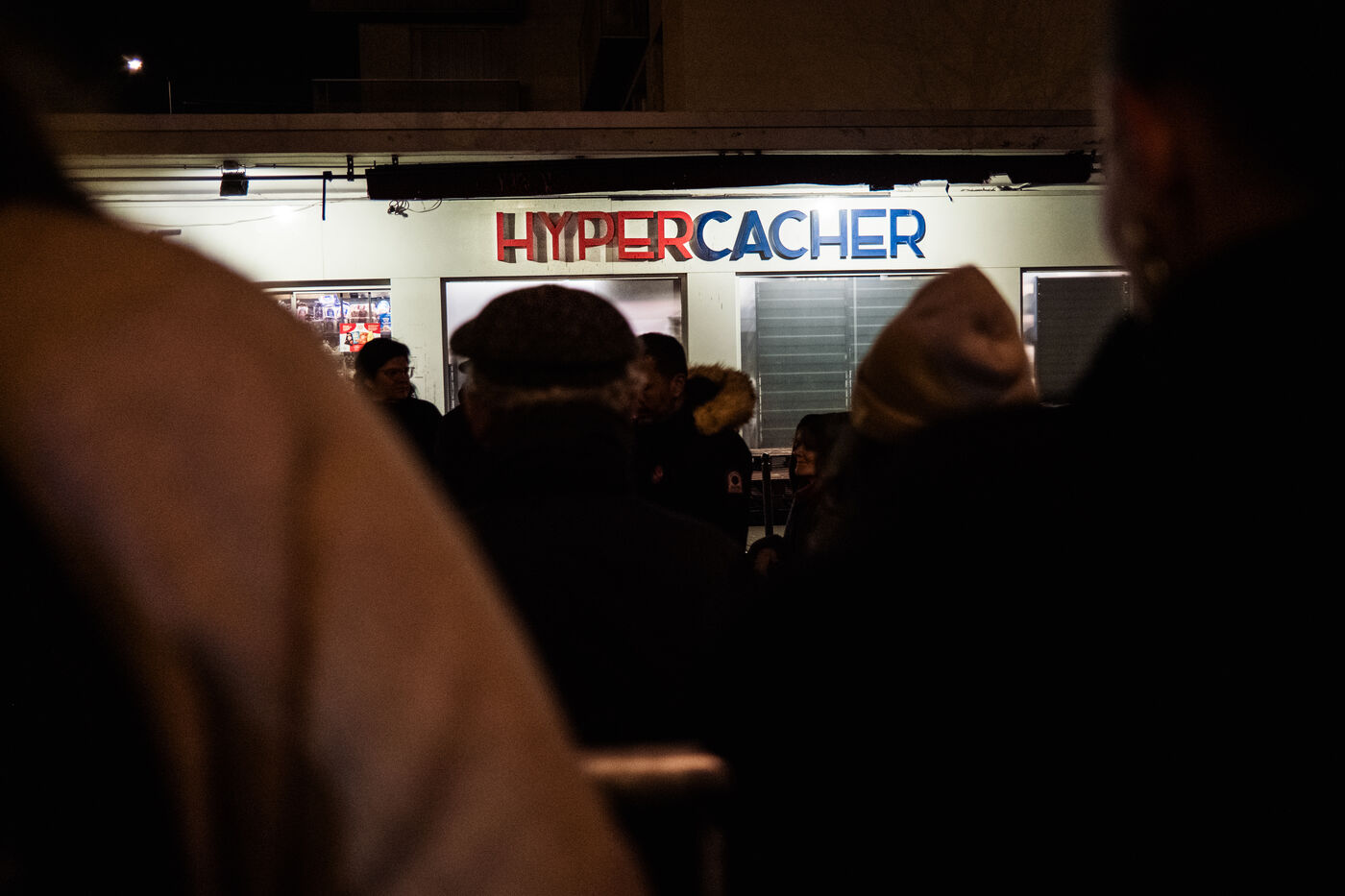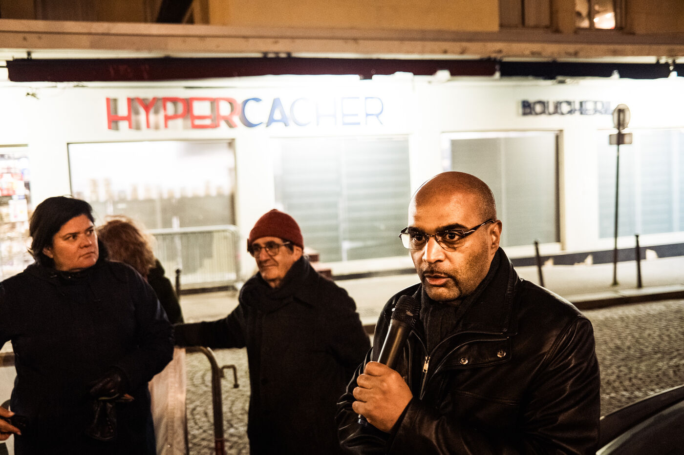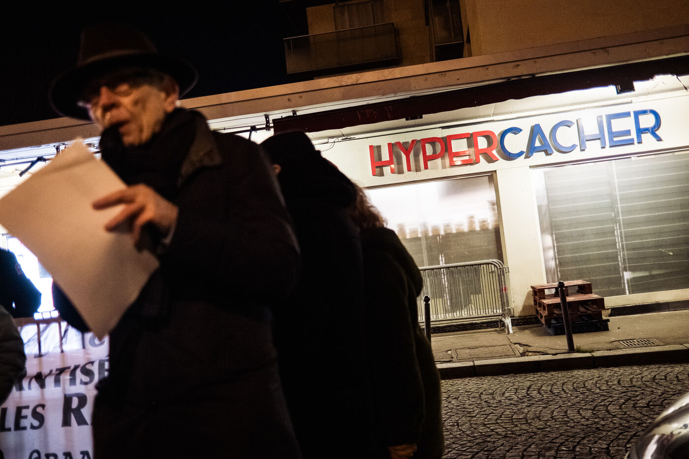 Rassemblement par le Réseau d'Action Contre l'Antisémitisme et Tous Les Racismes (RAAR) pour commémorer les 10 ans des attentas de janvier 2015. Le 9 janvier 2025, devant l'HyperCacher.