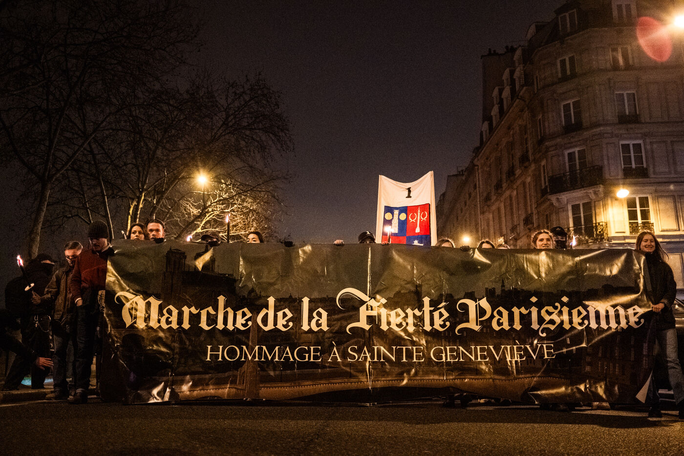 Marche de Paris Fierté en hommage à Sainte-Geneviève.