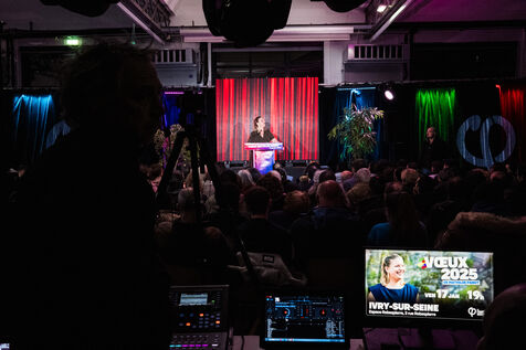 Cérémonie de Voeux 2025 de Mathilde Panot et portrait a l'Espace Robespierre a Ivry-sur-Seine.
