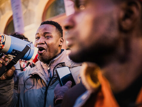Rassemblement en soutien aux mineurs isolés après l'annonce de la préfecture de l'évacuation de la Gaité Lyrique