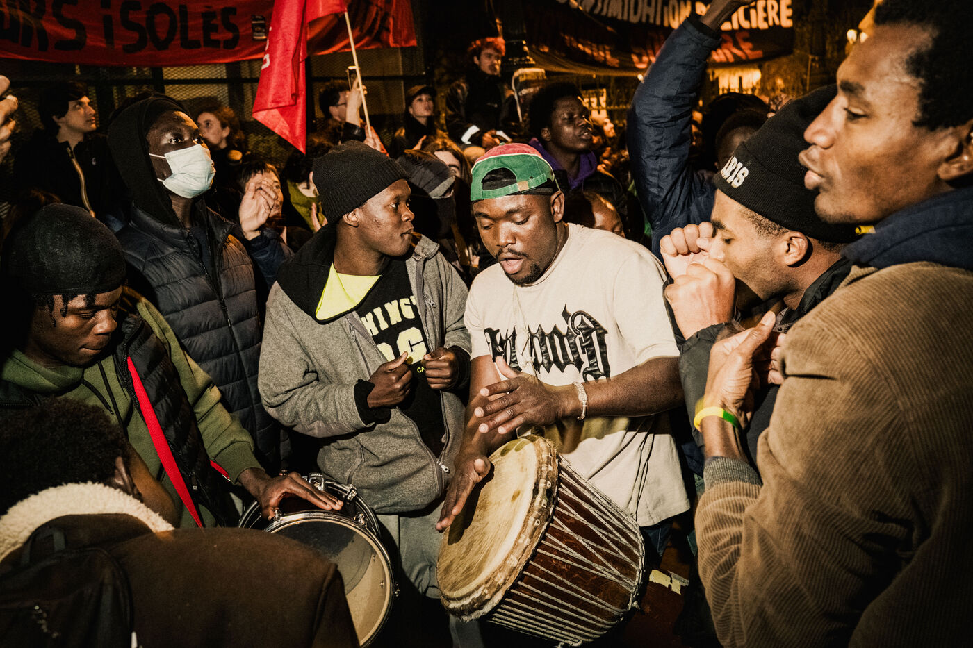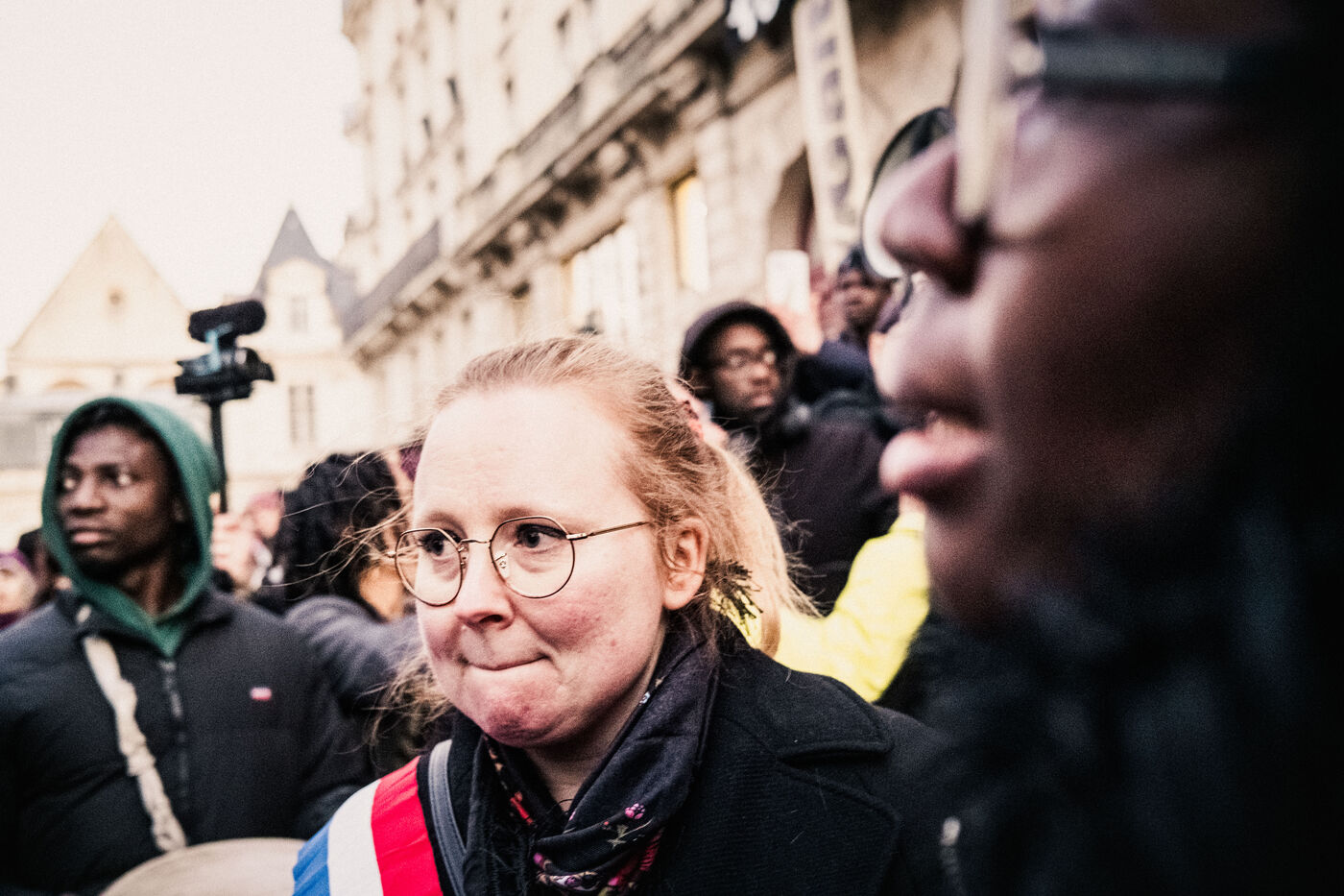 Rally in support of unaccompanied minors after prefecture announces evacuation of Gaité Lyrique.