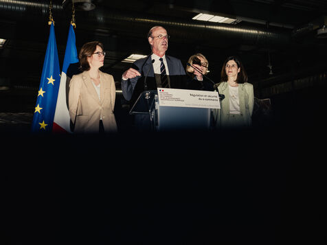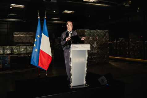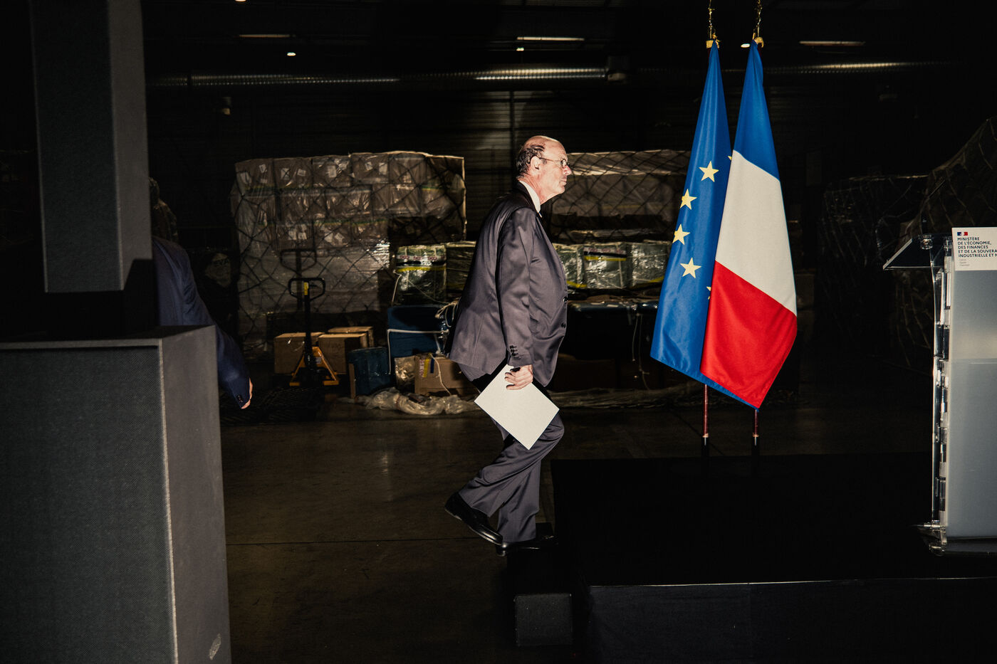 Visite ministérielle sur le thème de la régulation et la sécurité des plateformes de e-commerce dans un entrepôt de l'aéroport de Roissy Charles de Gaulle.