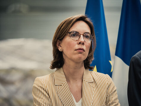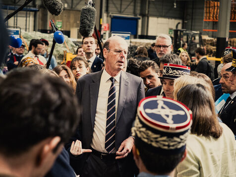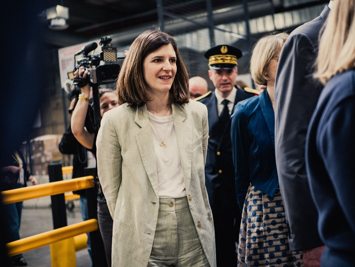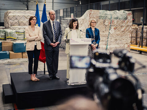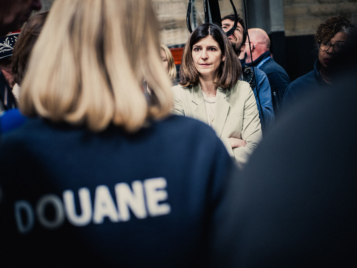 Ministerial visit to a warehouse at Roissy Charles de Gaulle airport to discuss the regulation and security of e-commerce platforms.