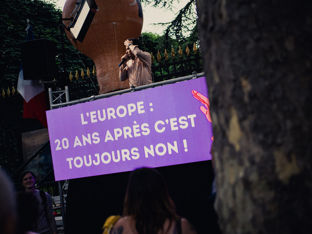 Rassemblement du parti politique Les Patriotes pour la sorti de la France de l'UE a l'occasion des vingt ans du référendum Français sur le traité établissant une Constitution pour l Europe.