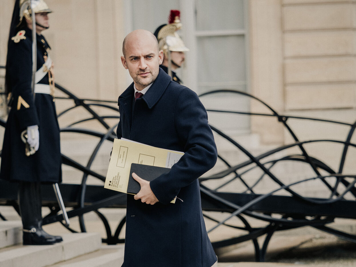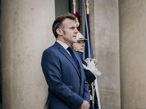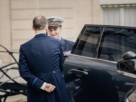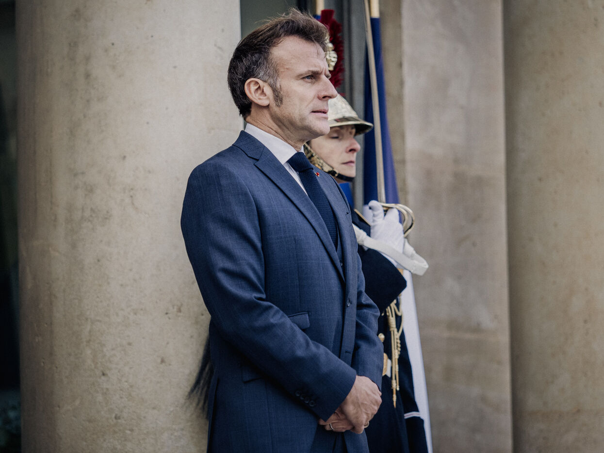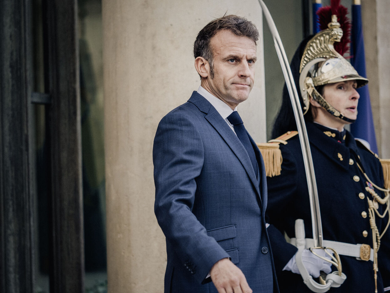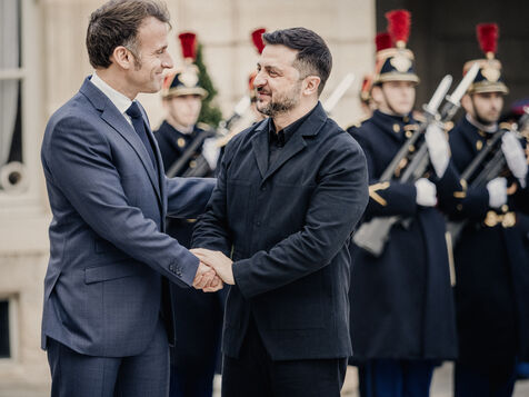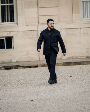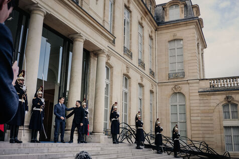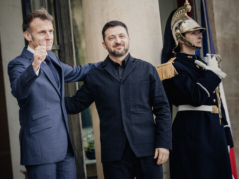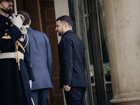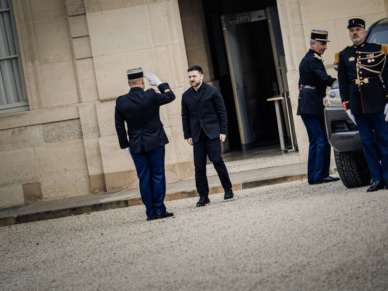 Meeting between Volodymyr Zelensky, President of Ukraine, and Emmanuel Macron, President of the French Republic.