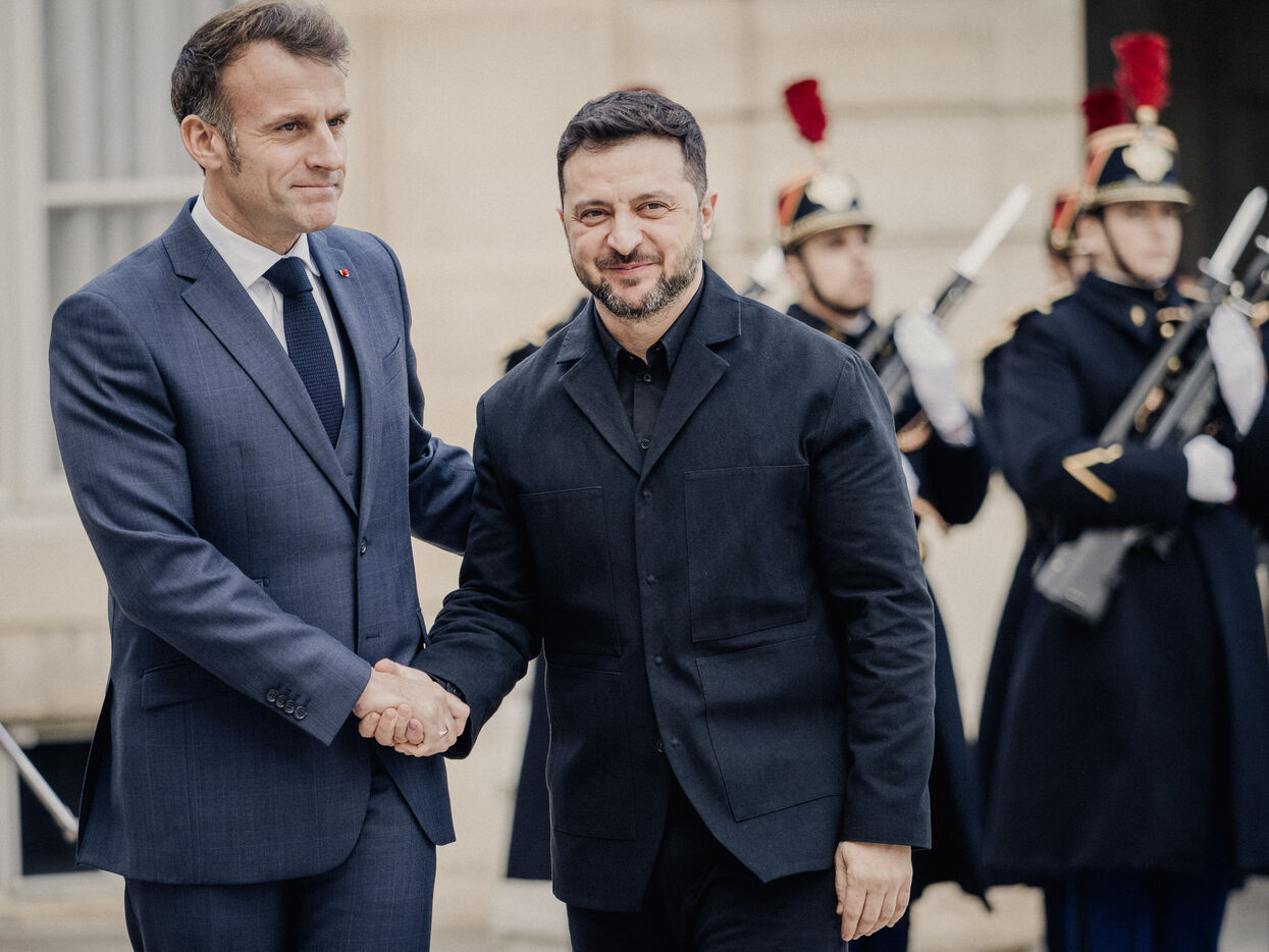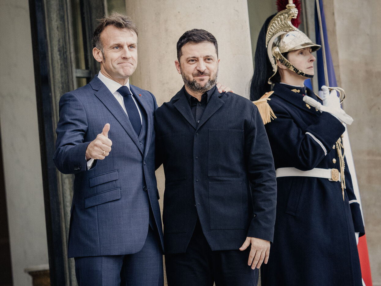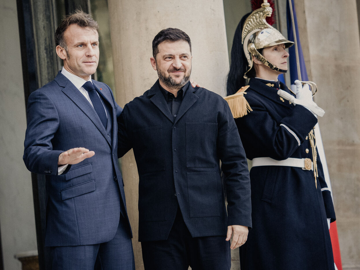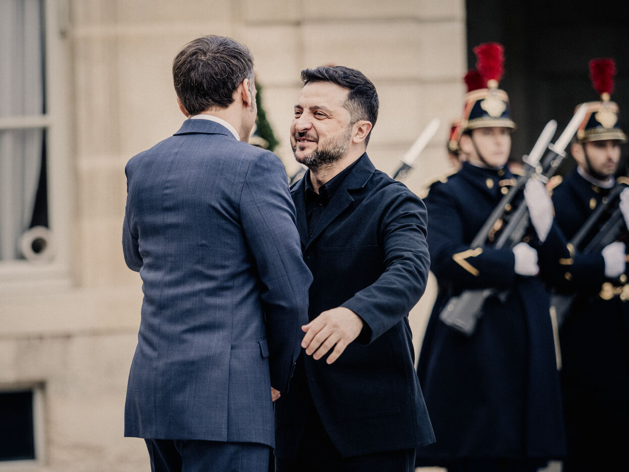 Meeting between Volodymyr Zelensky, President of Ukraine, and Emmanuel Macron, President of the French Republic