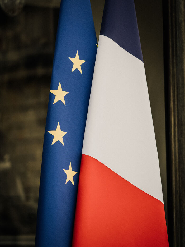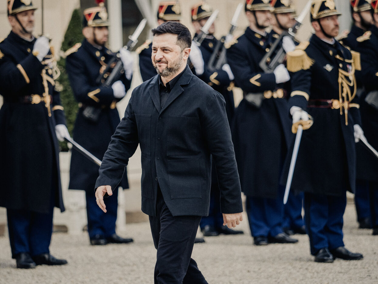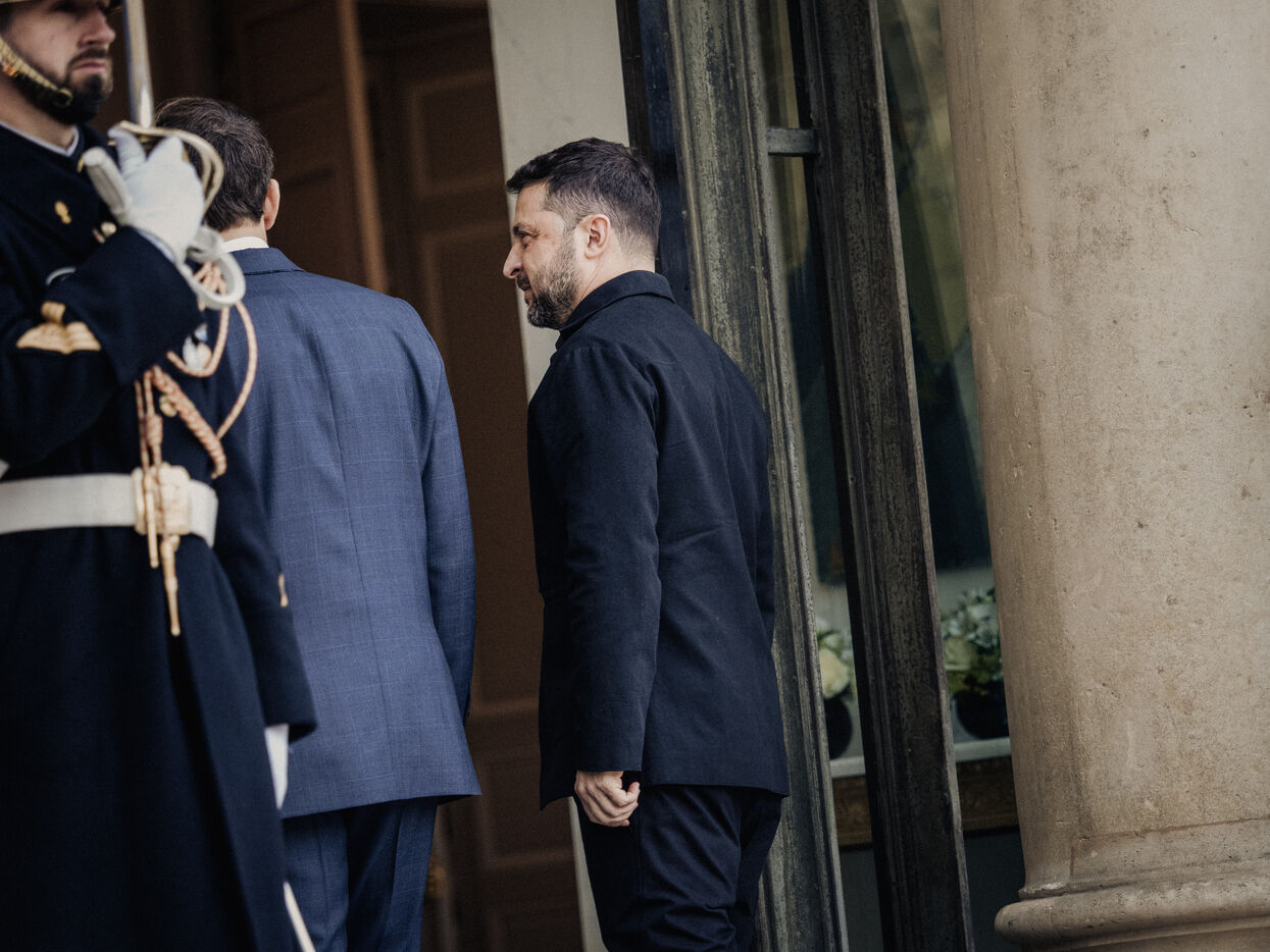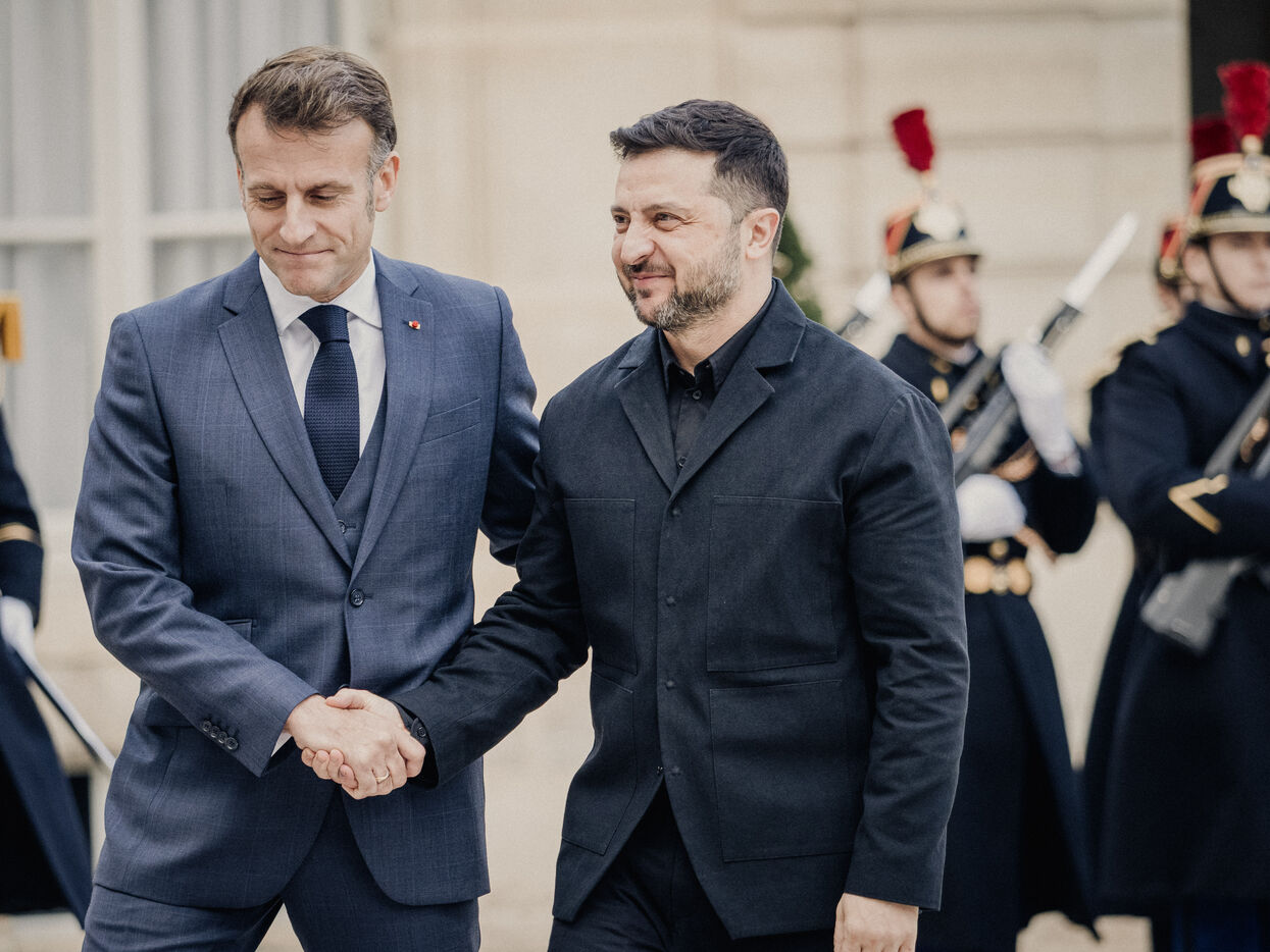 Meeting between Volodymyr Zelensky, President of Ukraine, and Emmanuel Macron, President of the French Republic