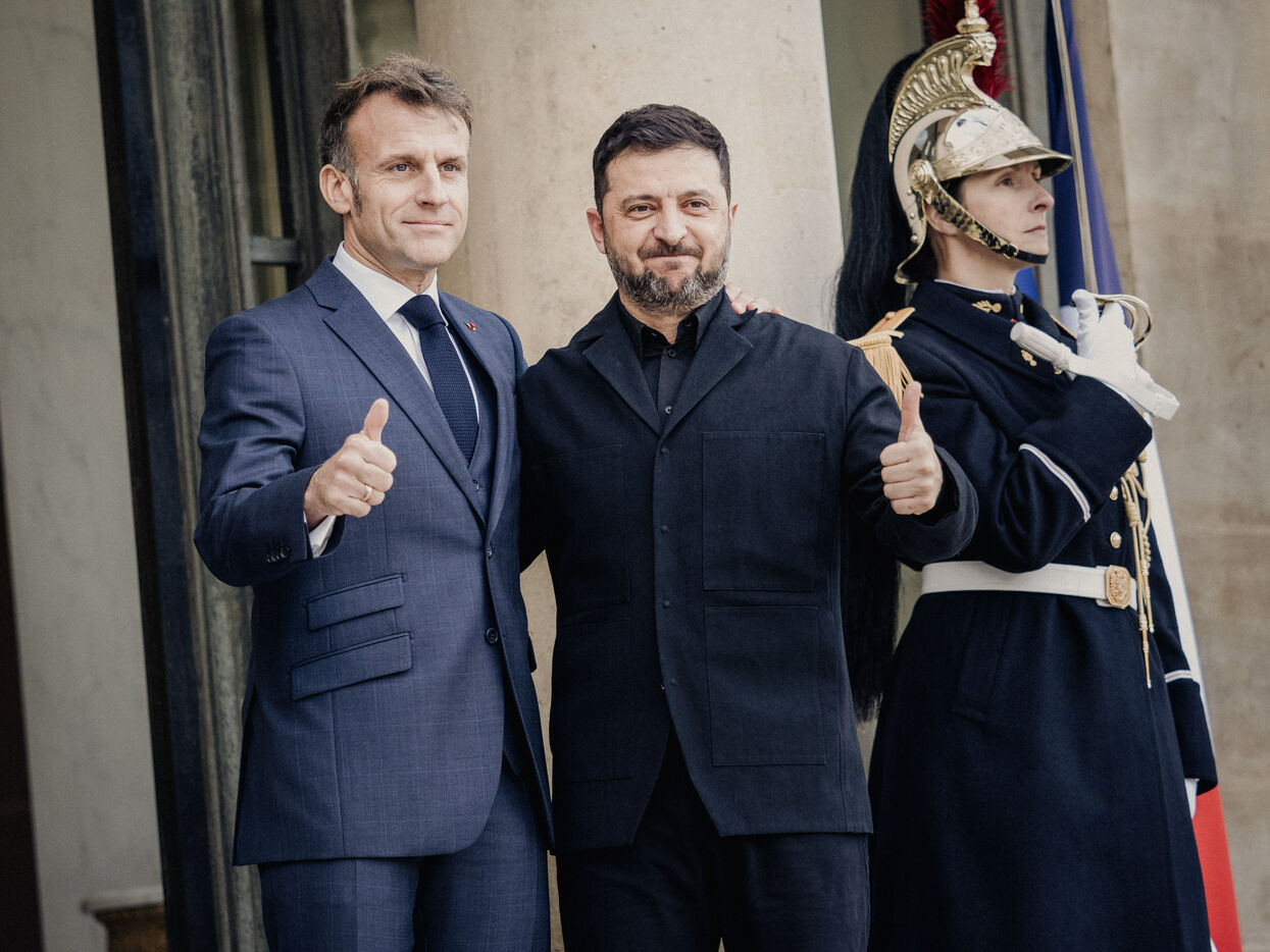 Rencontre entre Volodymyr Zelensky Président de l'Ukraine et Emmanuel Macron Président de la République Francaise.