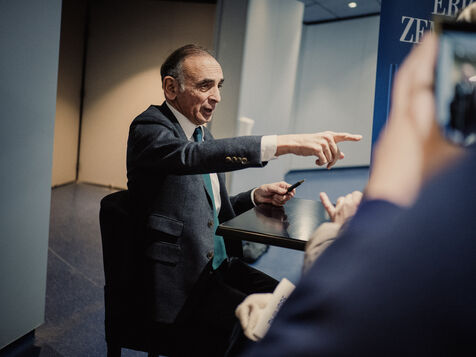 Eric Zemmour signing books during a debate evening entitled “Face à Vous” organized by the JDD