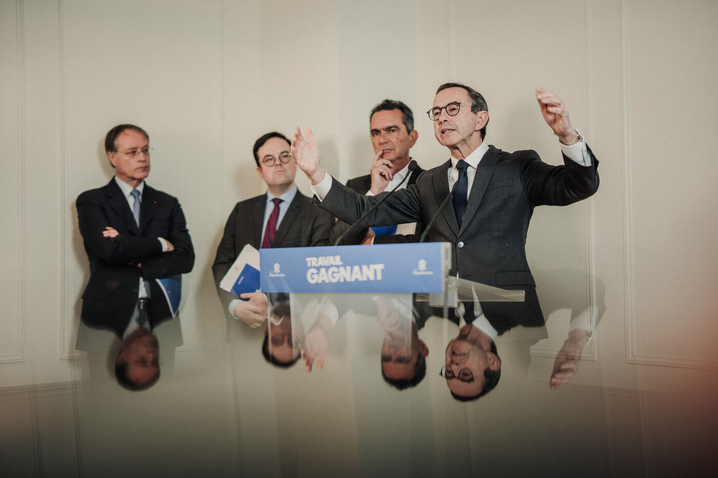 Press conference “Travail Gagnant” by Bruno Retailleau.
