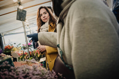 Sarah Knafo visits the Convention market as part of her campaign for Mayor of Paris