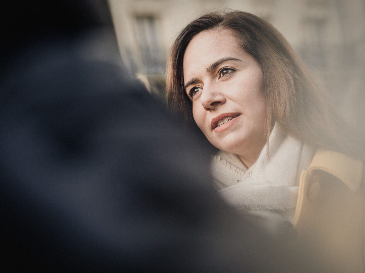 Sarah Knafo, member of Reconquête!, visits the Convention market as part of her campaign for Paris City Hall.