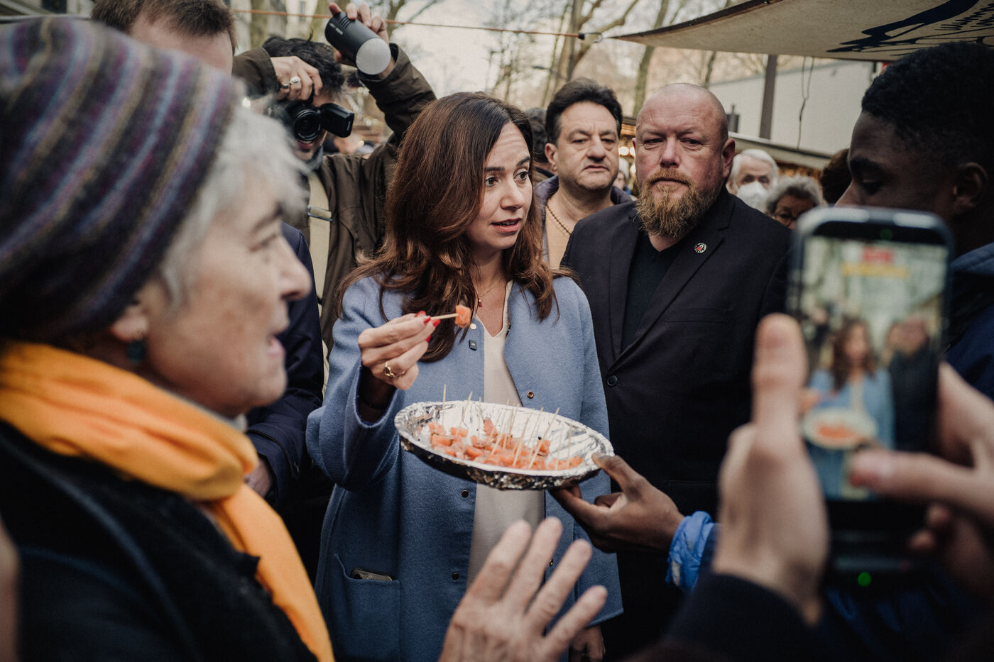 Sarah Knafo, member of Reconquête!, visits the 12th arrondissement as part of her campaign for Paris City Hall