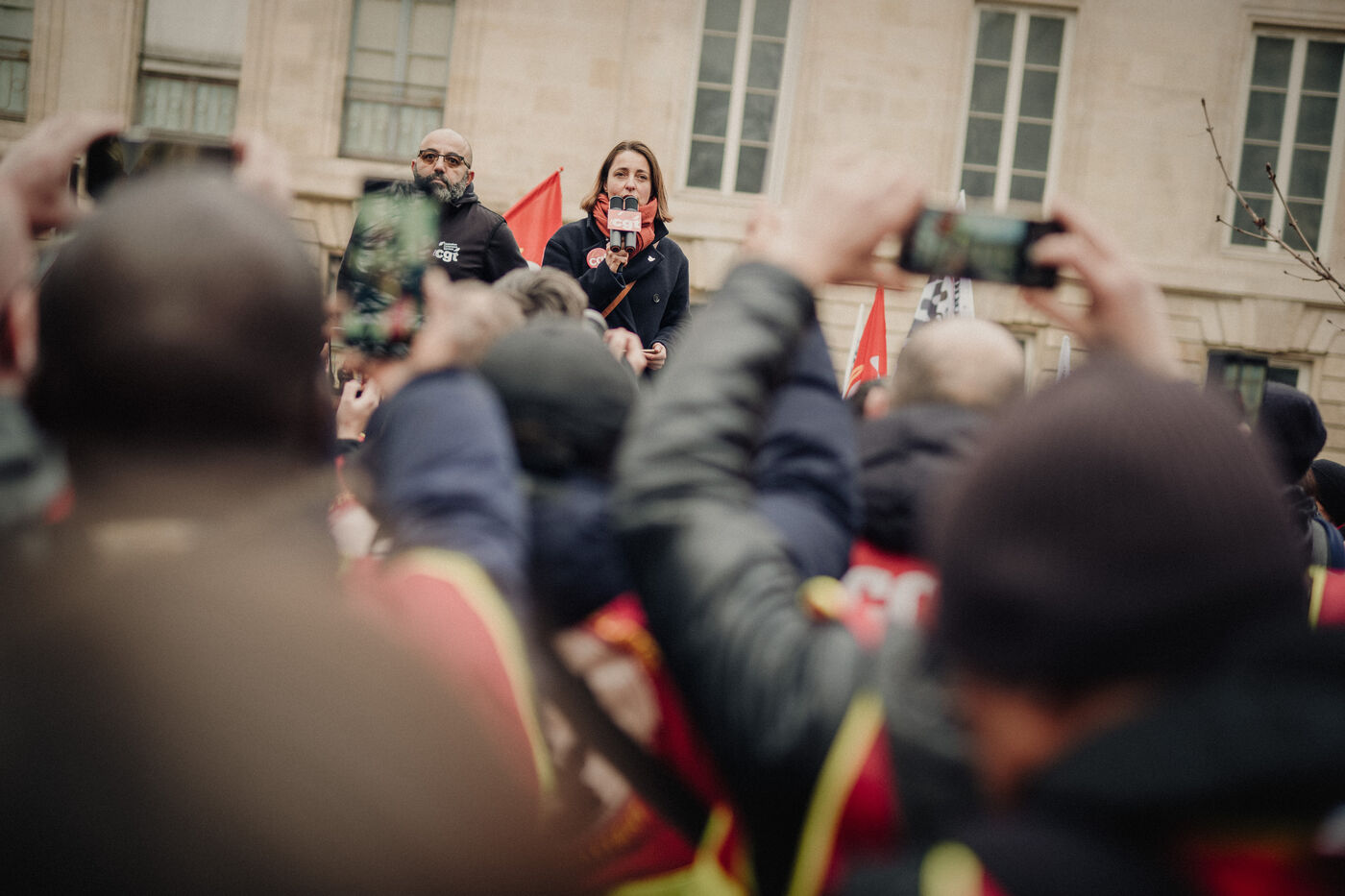Rassemblement contre le projet de loi visant a supprimer la fête du Travail du 1er mai de la liste des jours fériés.