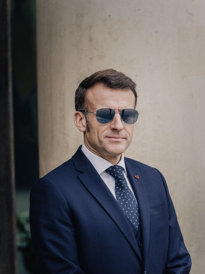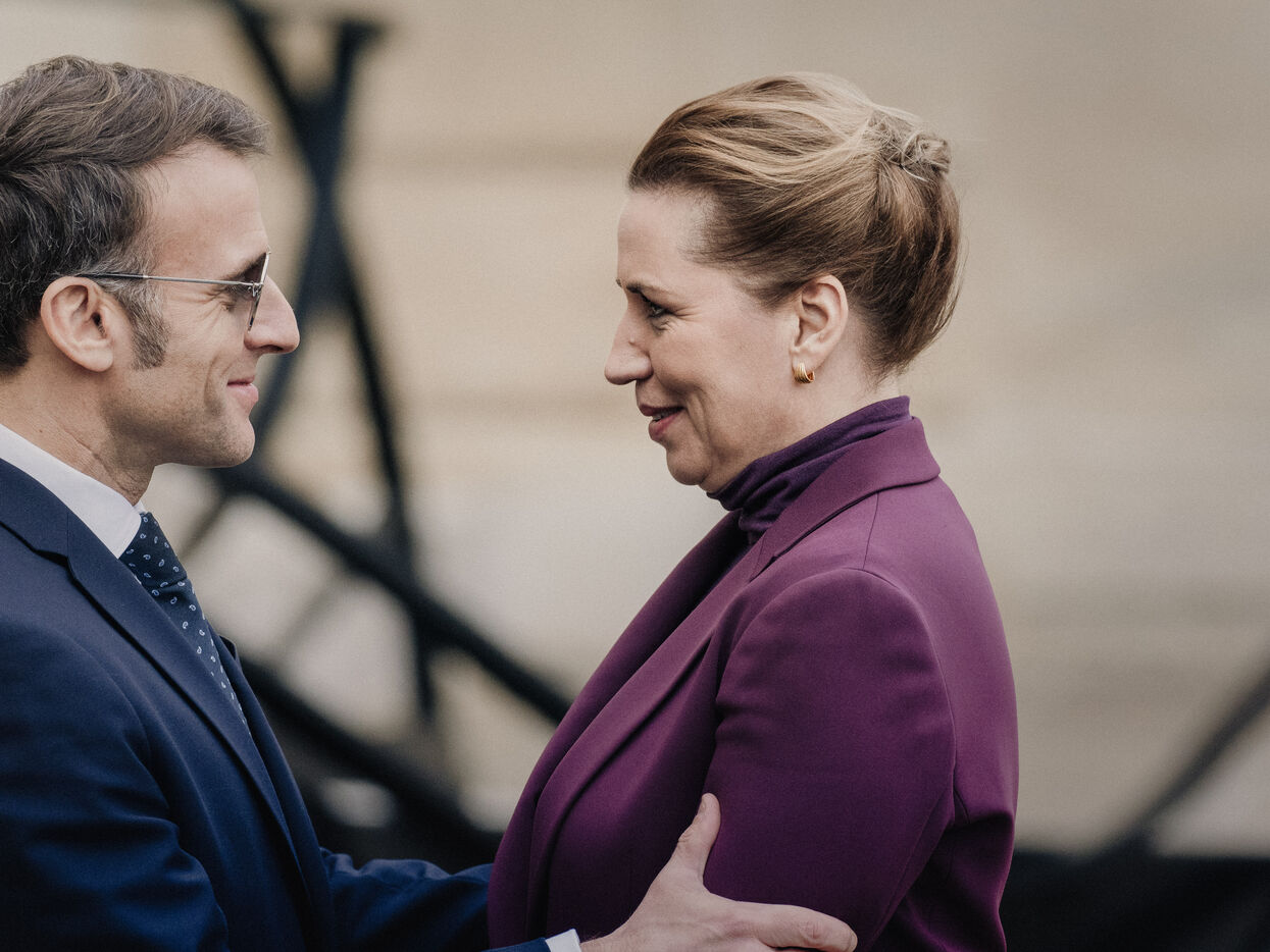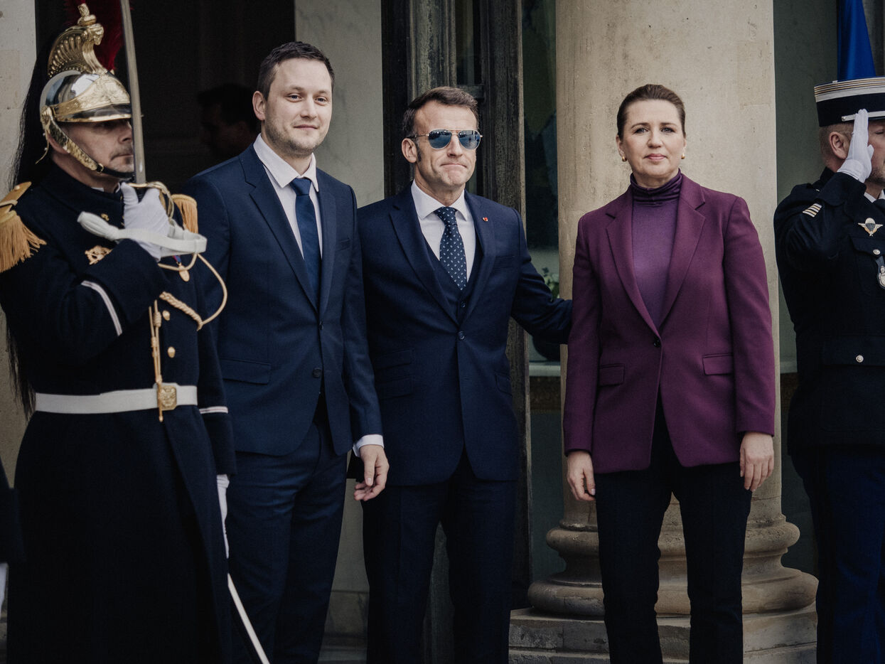 Emmanuel Macron, President of France, welcomes the Prime Minister of the Kingdom of Denmark and the Prime Minister of Greenland.