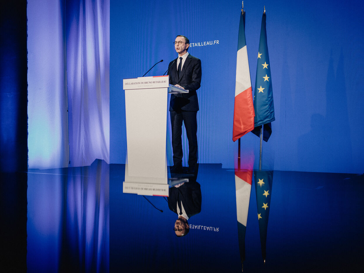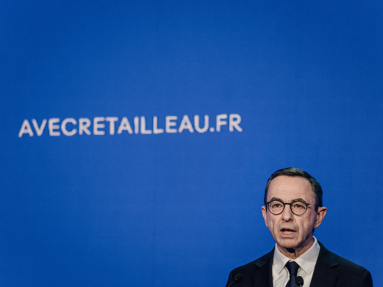Bruno Retailleau former Minister of the Interior and president of the Les Républicains LR political party announces his candidacy for the 2027 French presidential election.