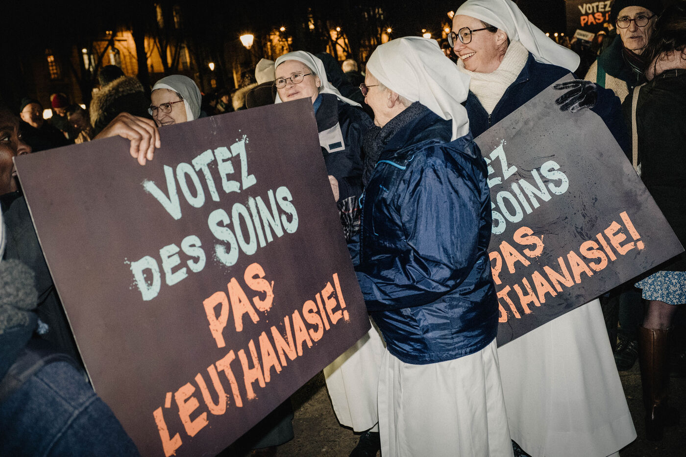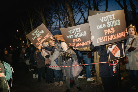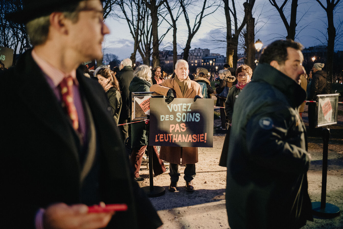 Manifestation contre un projet de loi visant à créer un droit à l'aide a mourir.