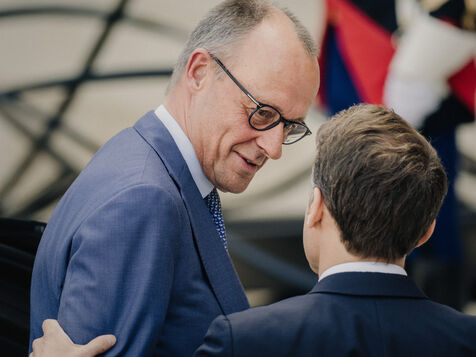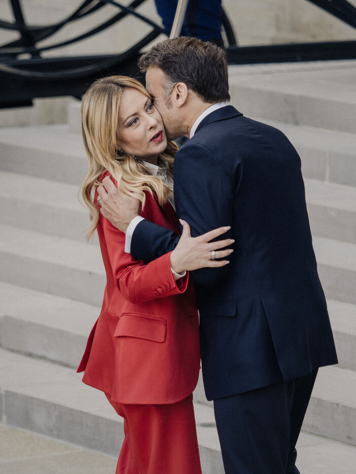 Emmanuel Macron, President of France, receives Friedrich Merz, Federal Chancellor of Germany, and Giorgia Meloni, Prime Minister of Italy