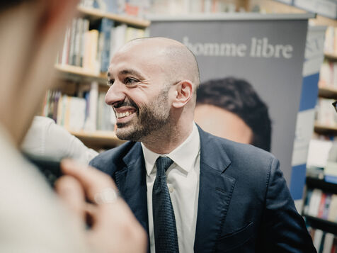 Gabriel Attal en séance de dédicaces pour son nouveau livre En homme libre aux Editions de l'Observatoire.