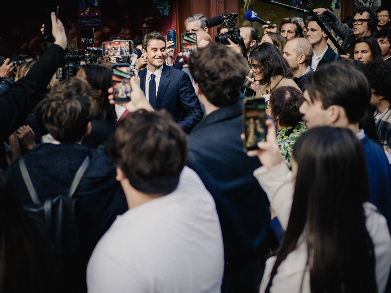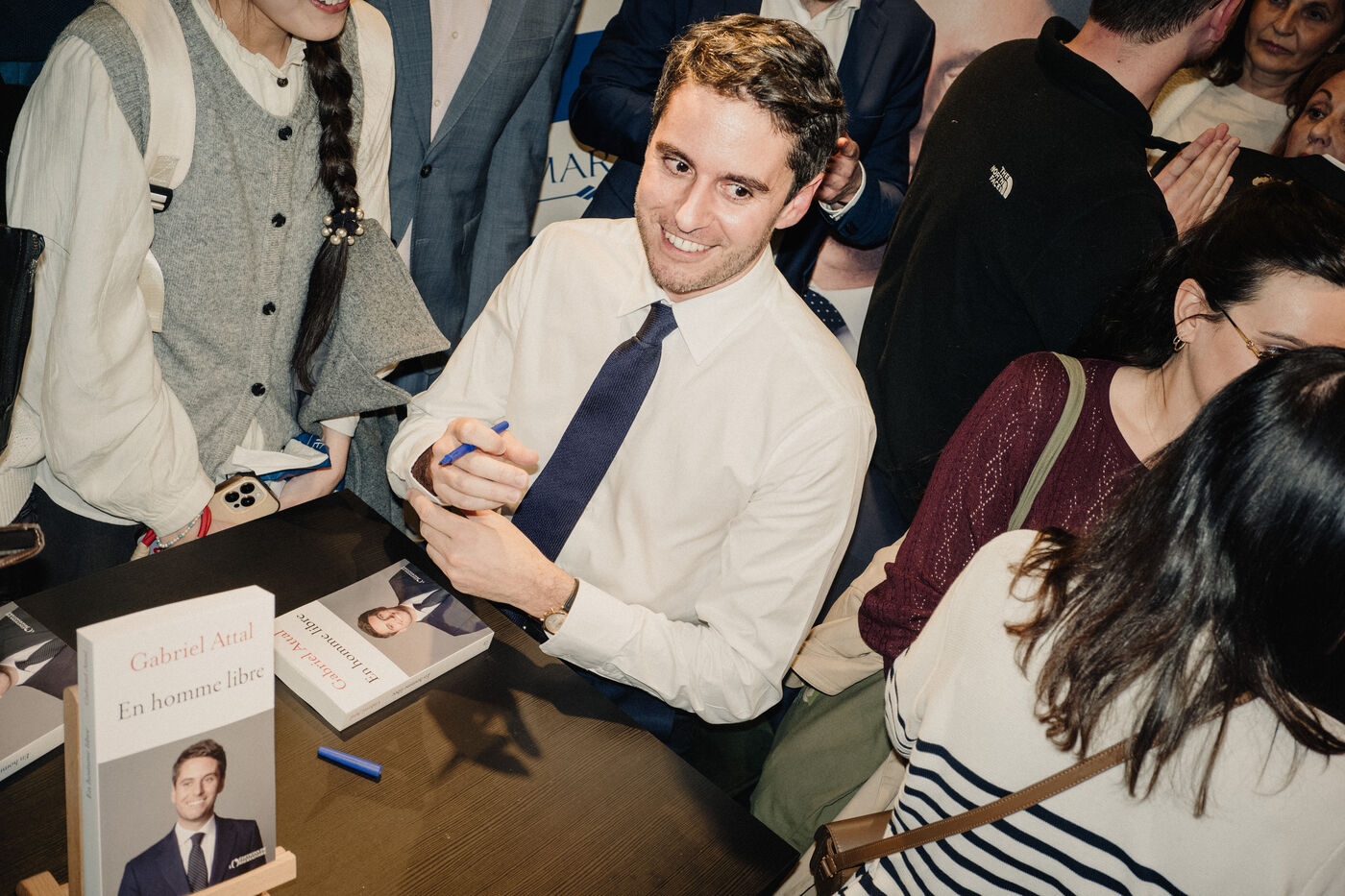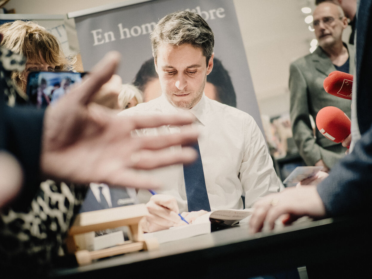 Gabriel Attal at a book-signing event for his new book "En homme libre", published by Editions de l'Observatoire