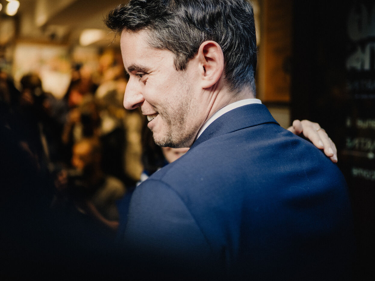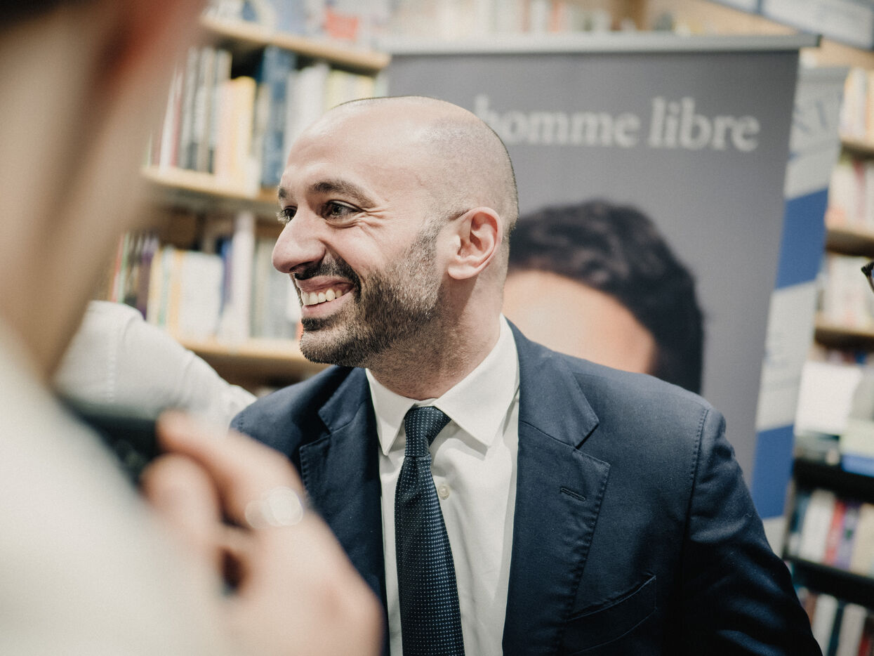 Gabriel Attal at a book-signing event for his new book "En homme libre", published by Editions de l'Observatoire.