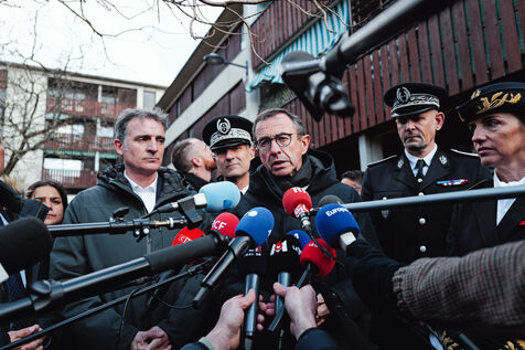 After visiting Saint-Bruno, a working-class neighborhood that is regularly the scene of drug-related settlements of scores, he presented the government's new « doctrine » on the fight against drug trafficking to the press at the Isère Prefecture.