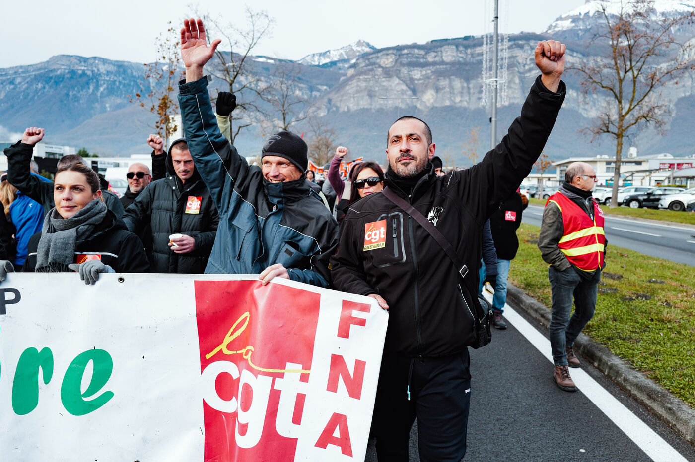 After gathering to protest against « industrial decline » in Crolles, in the Grésivaudan valley, in front of the Teisseire production plant slated for closure, alongside employees on strike to save their jobs, the demonstrators took part in a rally in front of the Grenoble prefecture.