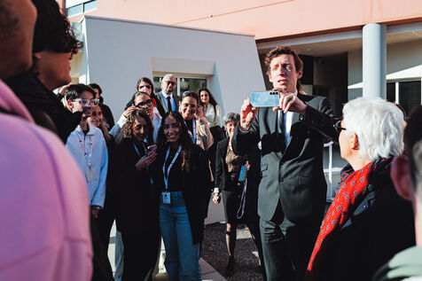 Le ministre s'est rendu dans un premier temps au lycée Pablo Neruda de Saint-Martin-d’Hères, où il a notamment rencontré des élèves et d'anciens élèves du lycée engagés dans le projet d’accompagnement psychologique porté au sein de l’établissement.