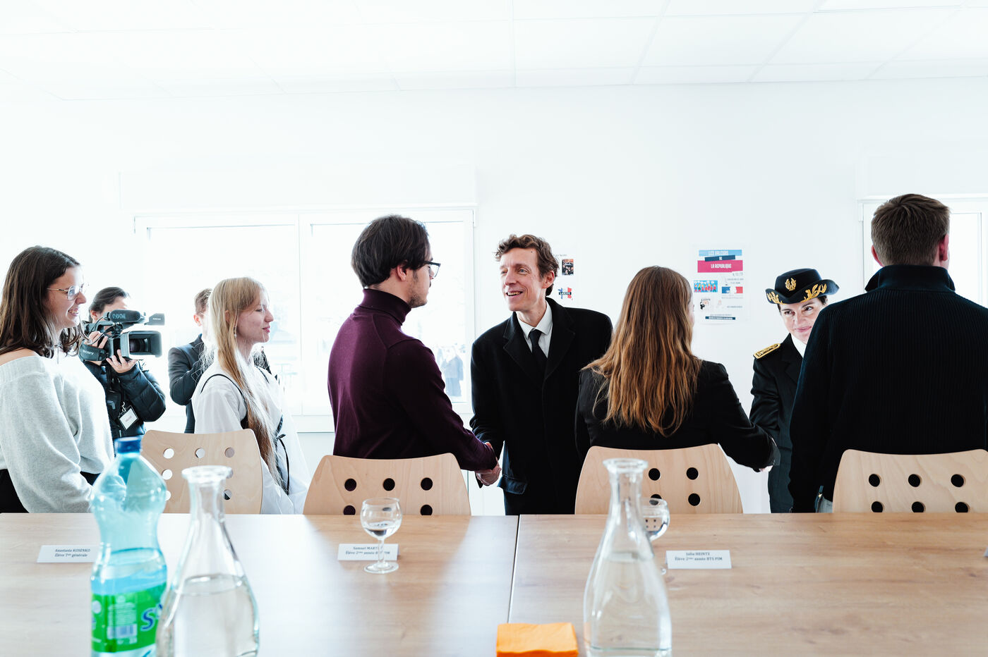 The minister first visited the Pablo Neruda high school in Saint-Martin-d'Hères, where he met with students and alumni involved in the school's psychological support project.