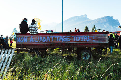 A few hours later, the FNSEA led a procession against the free trade agreement with the Mercosur countries to the centre of Grenoble, where farmers gathered to block traffic.
