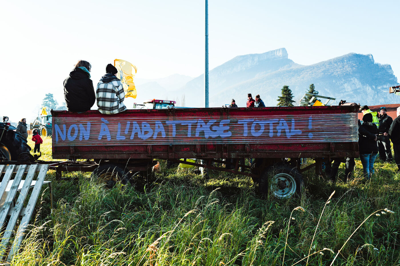 On the initiative of the Confédération Paysanne farmers' union, a roadblock was set up on a roundabout in Voreppe, in the suburbs of Grenoble, to demand an end to the culling of cattle herds infected with contagious nodular dermatitis.