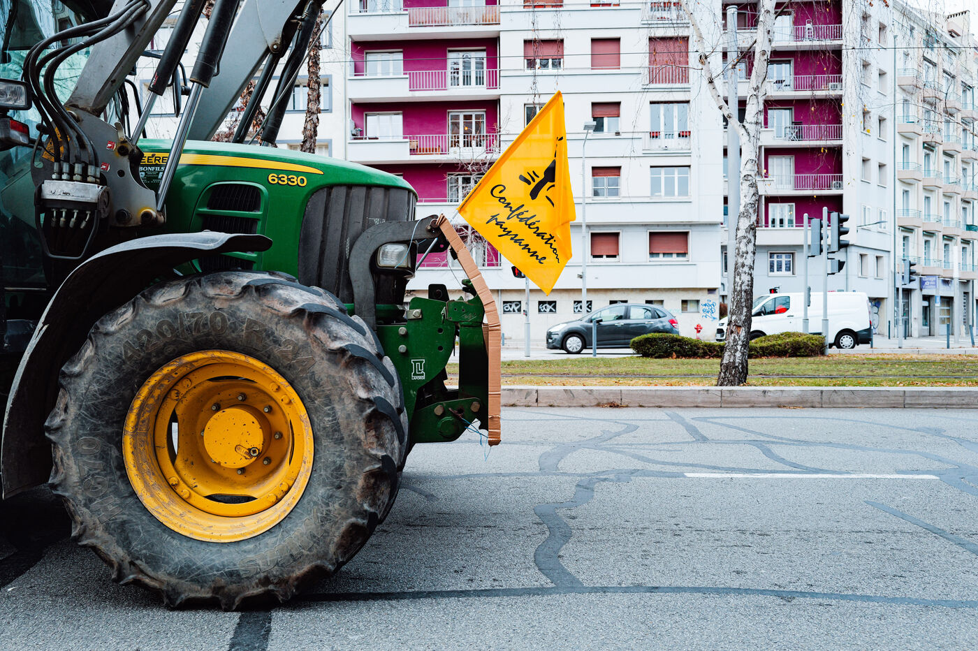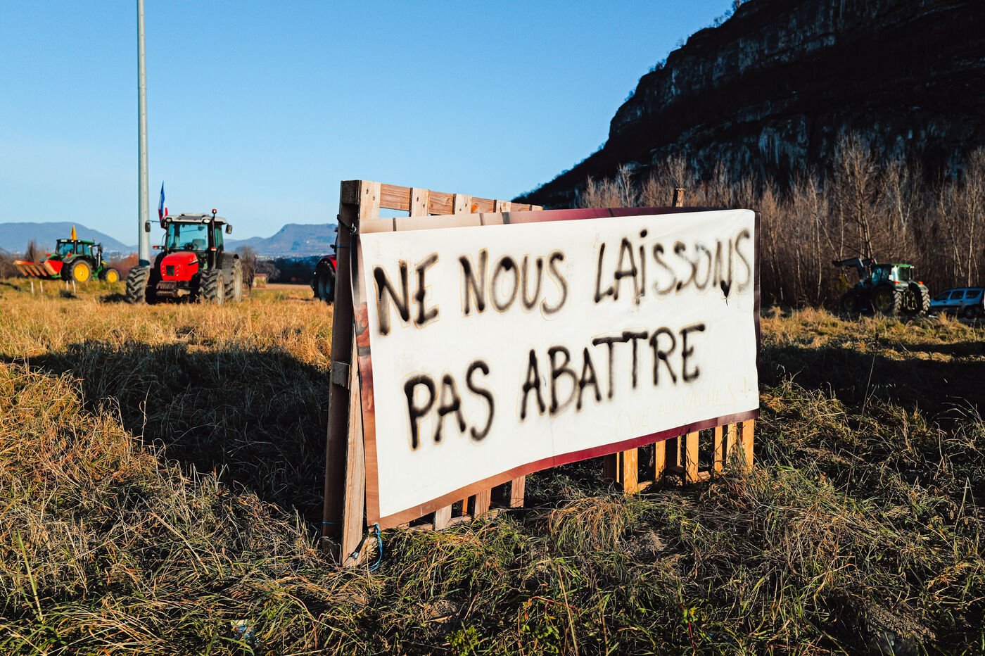 At the call of the Confédération Paysanne farmers' union, they gathered between Vercors and Chartreuse to block traffic, then carried out a slow-moving protest between Voreppe and Grenoble, ending at the gates of the Departmental Directorate for Territories (DDT).