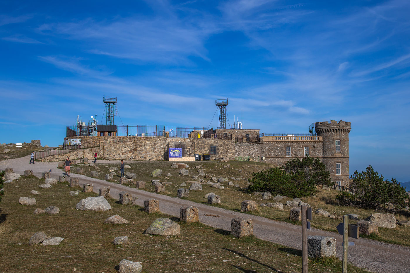 At the top of the Aigoual is the Mont Aigoual meteorological observatory, the last inhabited station in France. The station operated by Météo France is located at 1,567 m and experiences extreme weather conditions every year.