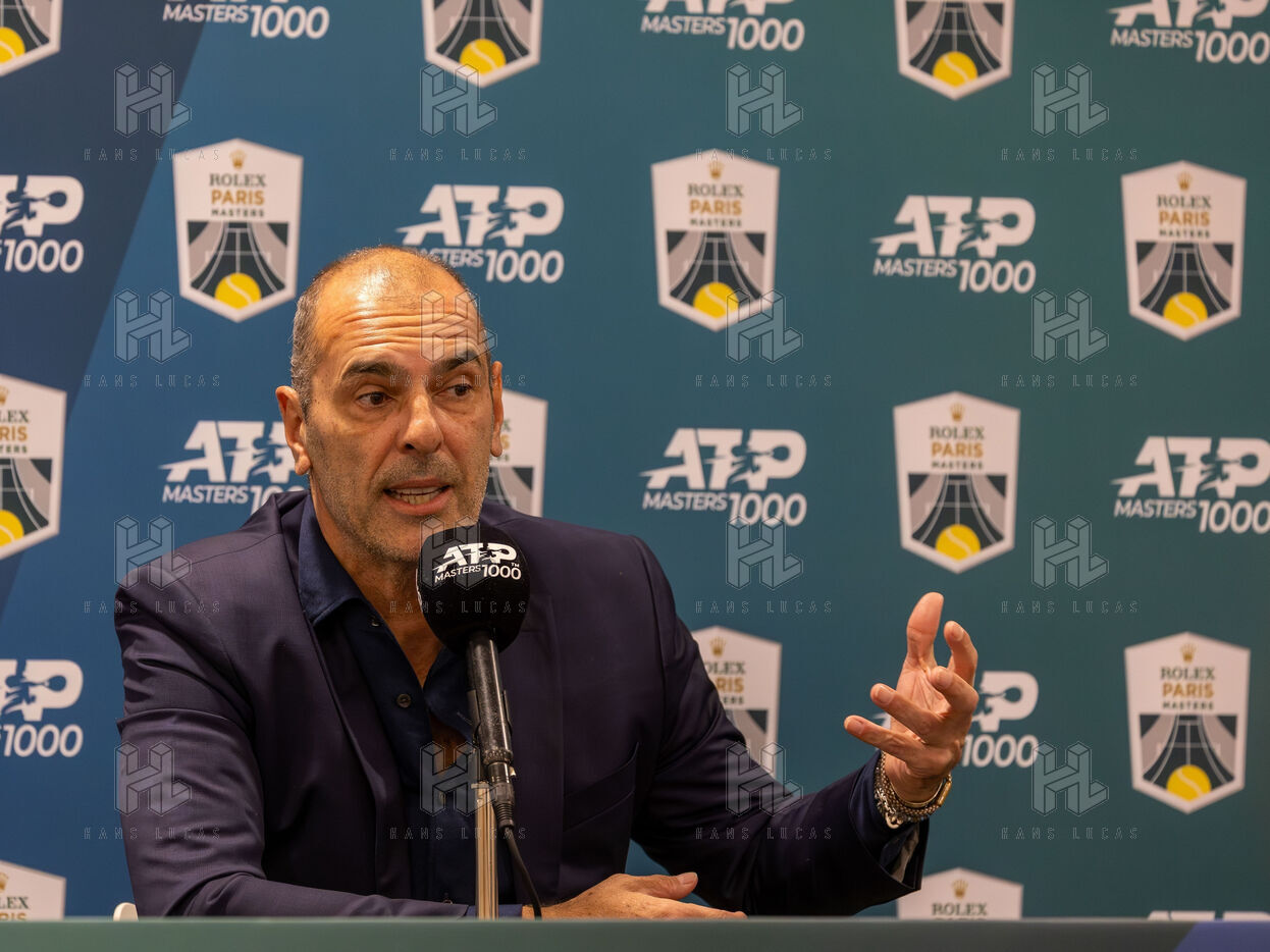 Conférence de presse d'avant tournoi de Cédric PIOLINE, directeur du Rolex Masters Paris 2025 de tennis (le dernier tournoi ATP 1000 de la saison) et tirage au sort effectué par le français Arthur RINDERKNECH, le monégasque Valentin VACHEROT et le joueur de rugby Gael FICKOU.