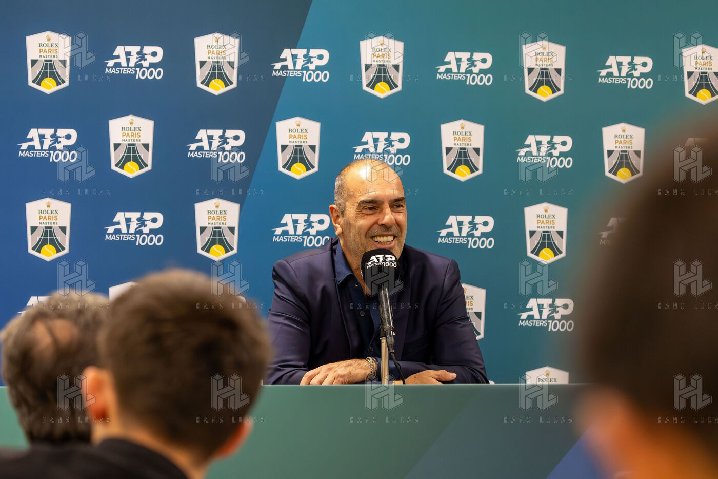 Pre-tournament press conference with Cédric PIOLINE, director of the Rolex Masters Paris 2025 tennis tournament (the last ATP 1000 tournament of the season), and draw conducted by Frenchman Arthur RINDERKNECH, Monegasque Valentin VACHEROT, and rugby player Gael FICKOU.