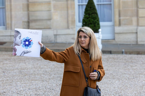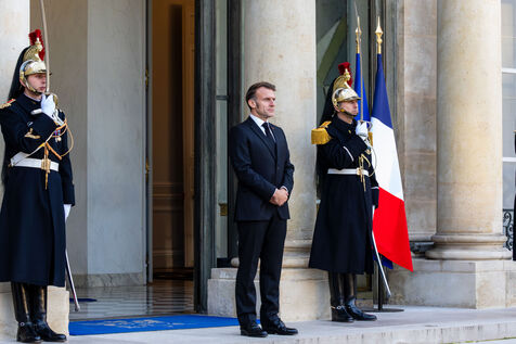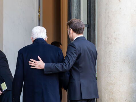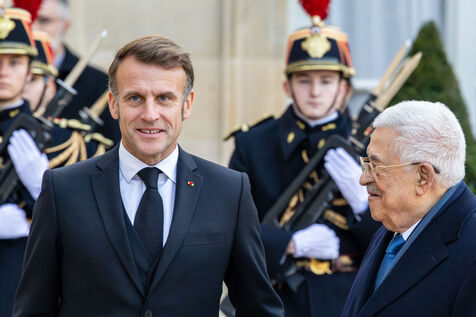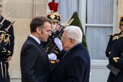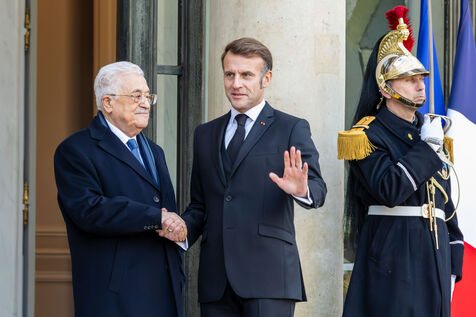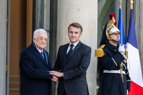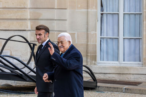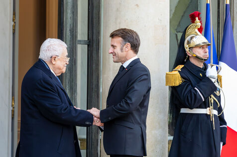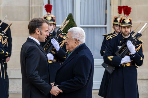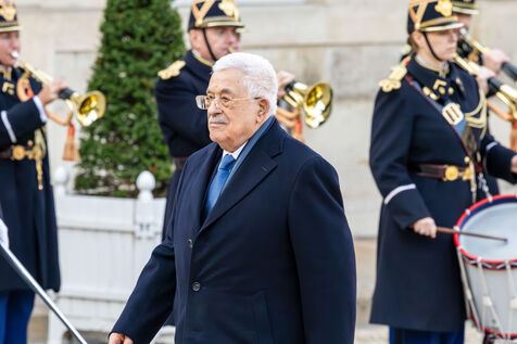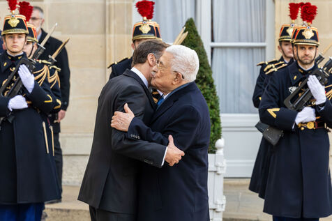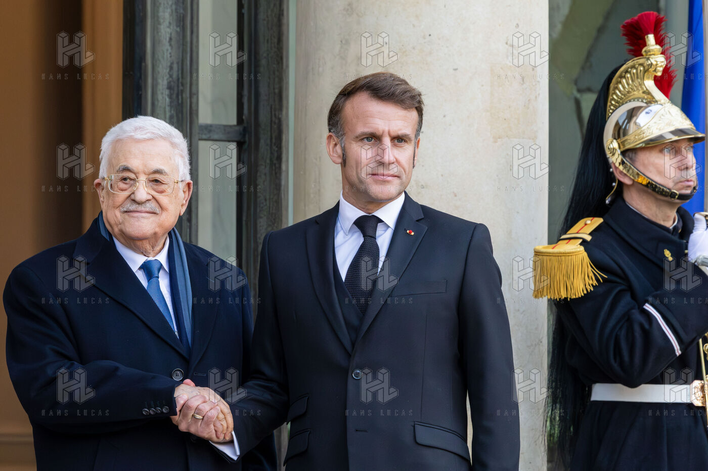 Mahmoud Abbas, President of the State of Palestine, arrives at the Élysée Palace for talks with Emmanuel Macron. This is Mahmoud Abbas's first visit to France since France recognized the State of Palestine.