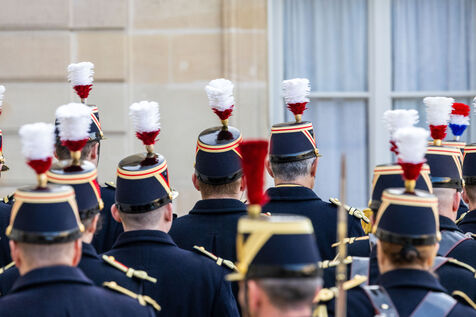 Arrivée dans la cour de l'Elysée de Mahmoud ABBAS, Président de l'Etat de Palestine, pour un entretien avec Emmanuel MACRON. C'est la première visite en France de Mahmoud ABBAS depuis que la France a reconnu l'Etat de Palestine.