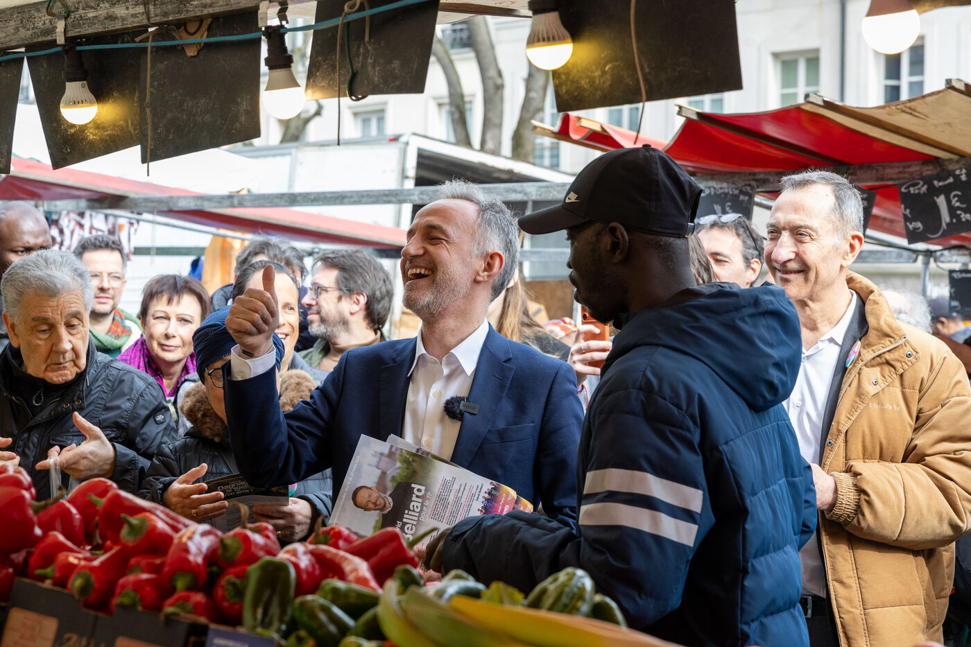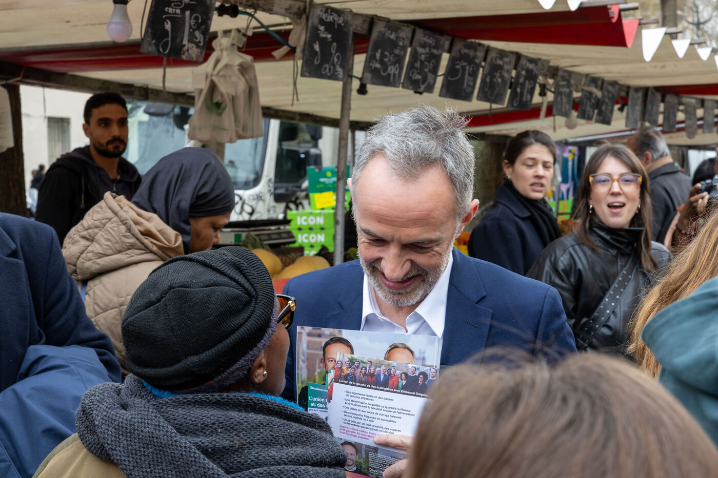 The United Left candidate for Paris City Hall, Emmanuel Grégoire, visited the Belleville market on Friday to meet with Parisians. He was accompanied by numerous candidates from other districts.