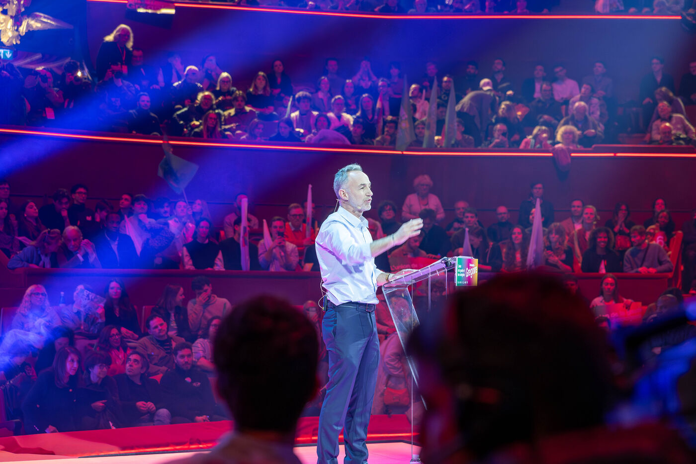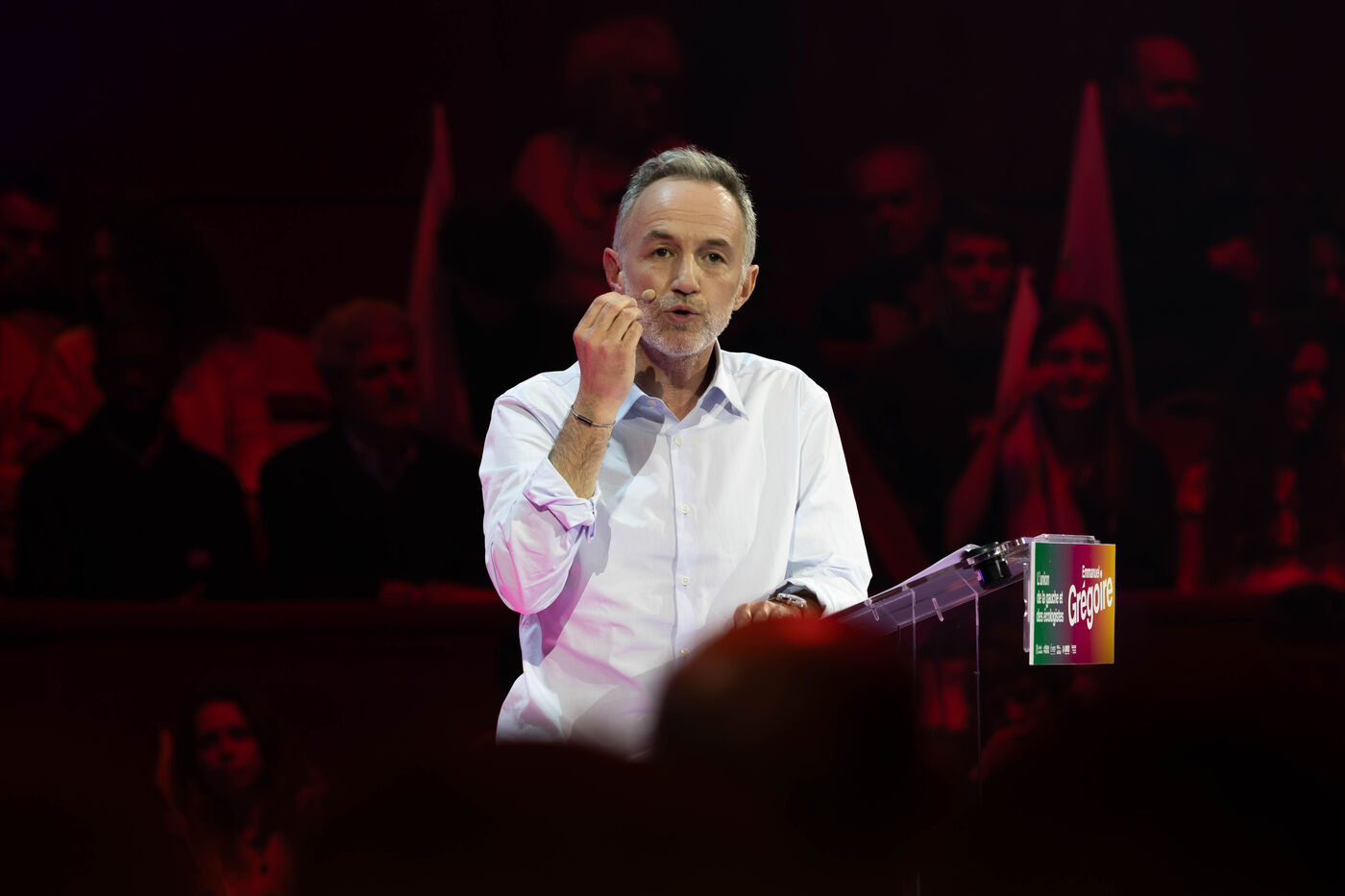 The United Left candidate for mayor of Paris, Emmanuel Grégoire, held his final major campaign rally at the Cirque d'Hiver on Thursday, March 12.