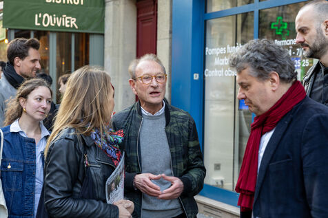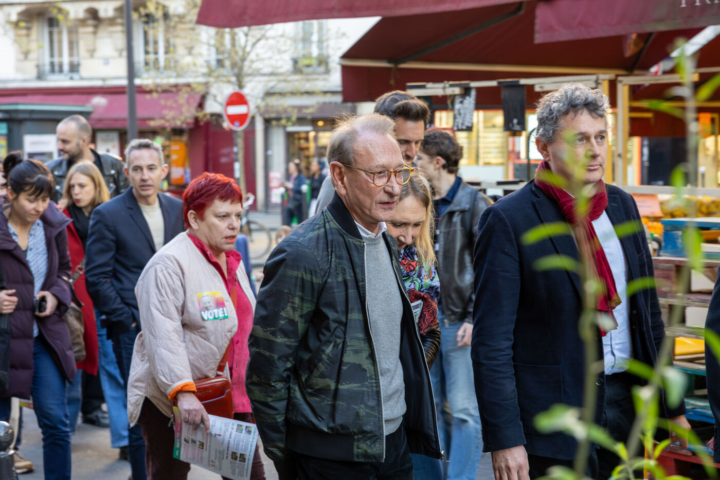Former Paris Mayor Bertrand Delanoë came to campaign for Eric Lejoindre, the United Left candidate in Paris’s 18th arrondissement. The two of them went on a campaign walkthrough of the 18th arrondissement.