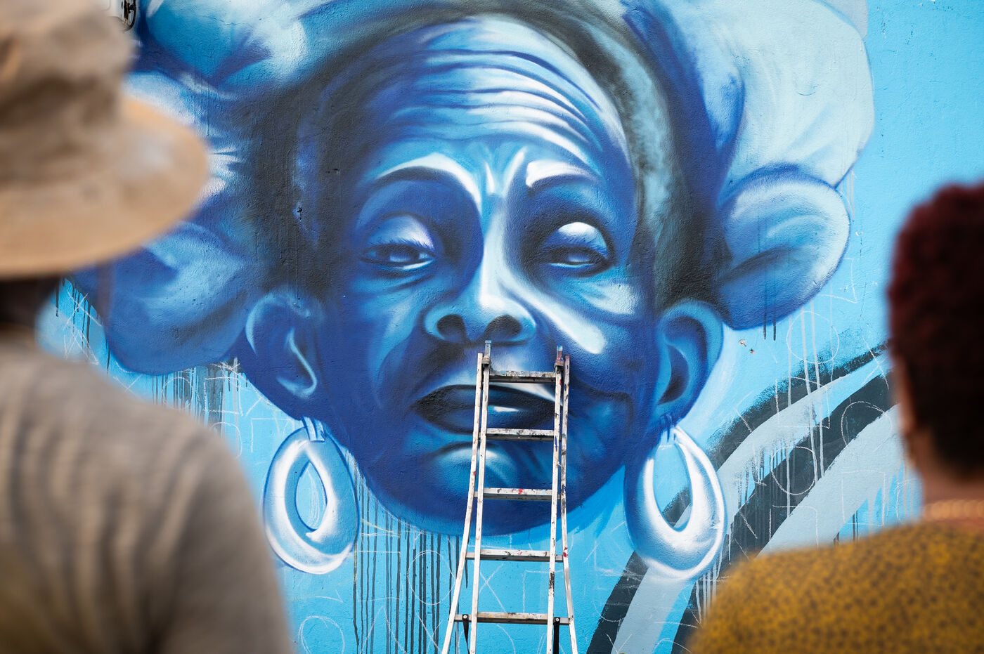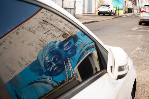 In Guadeloupe, decrepit walls and hollow spaces are not uncommon and tarnish the island's urban landscape. Guadeloupean artist and graffiti artist Macfa is creating a fresco on a decrepit wall to help beautify and improve the living environment in Baie-Mahault. This initiative, like that of his fellow graffiti artists, is based on a personal and voluntary commitment, after having contacted the owners of the walls, and has been warmly welcomed by the residents, who are rediscovering their neighborhood with a new and curious outlook.